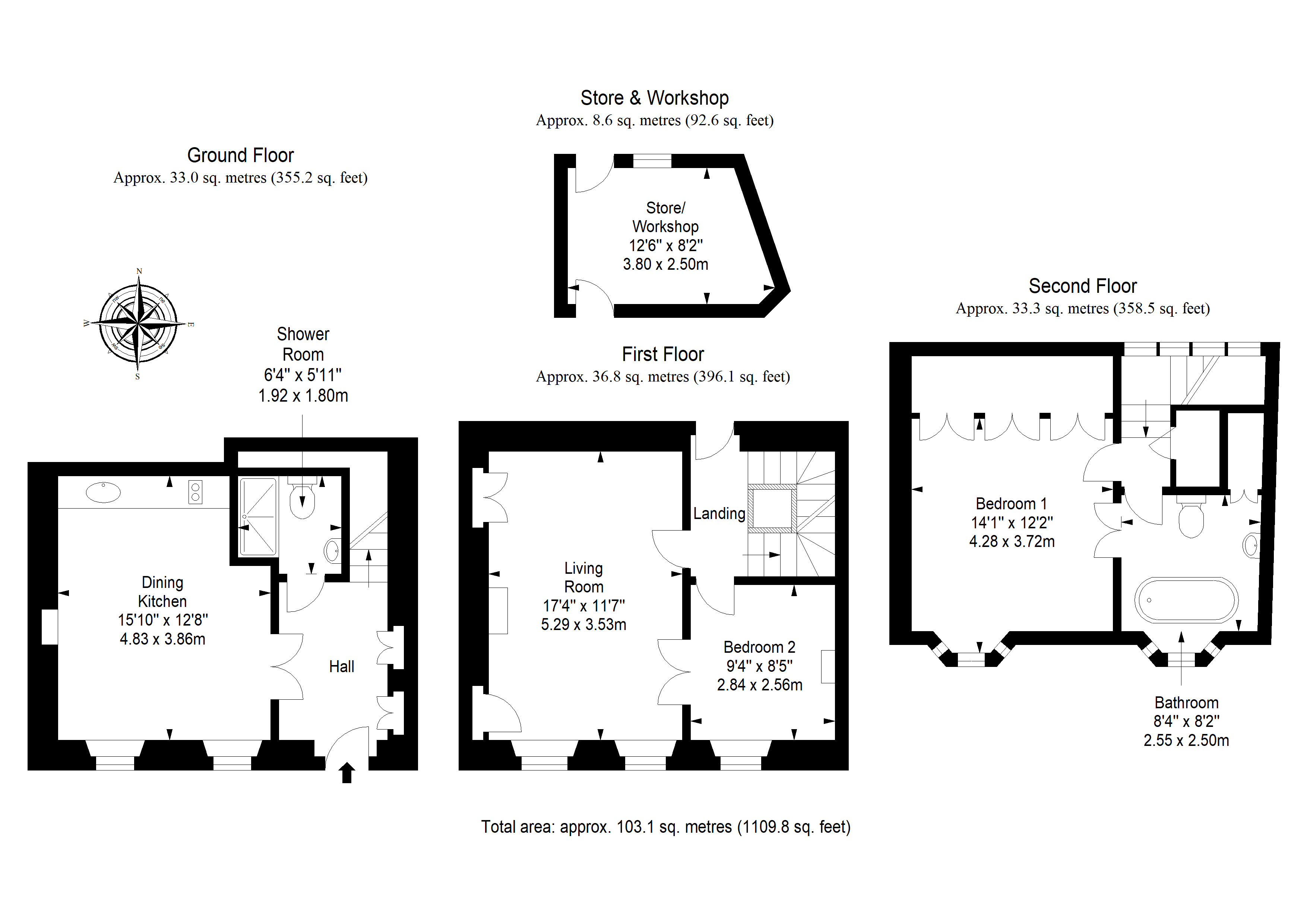 Private rear garden, detached store/workshop