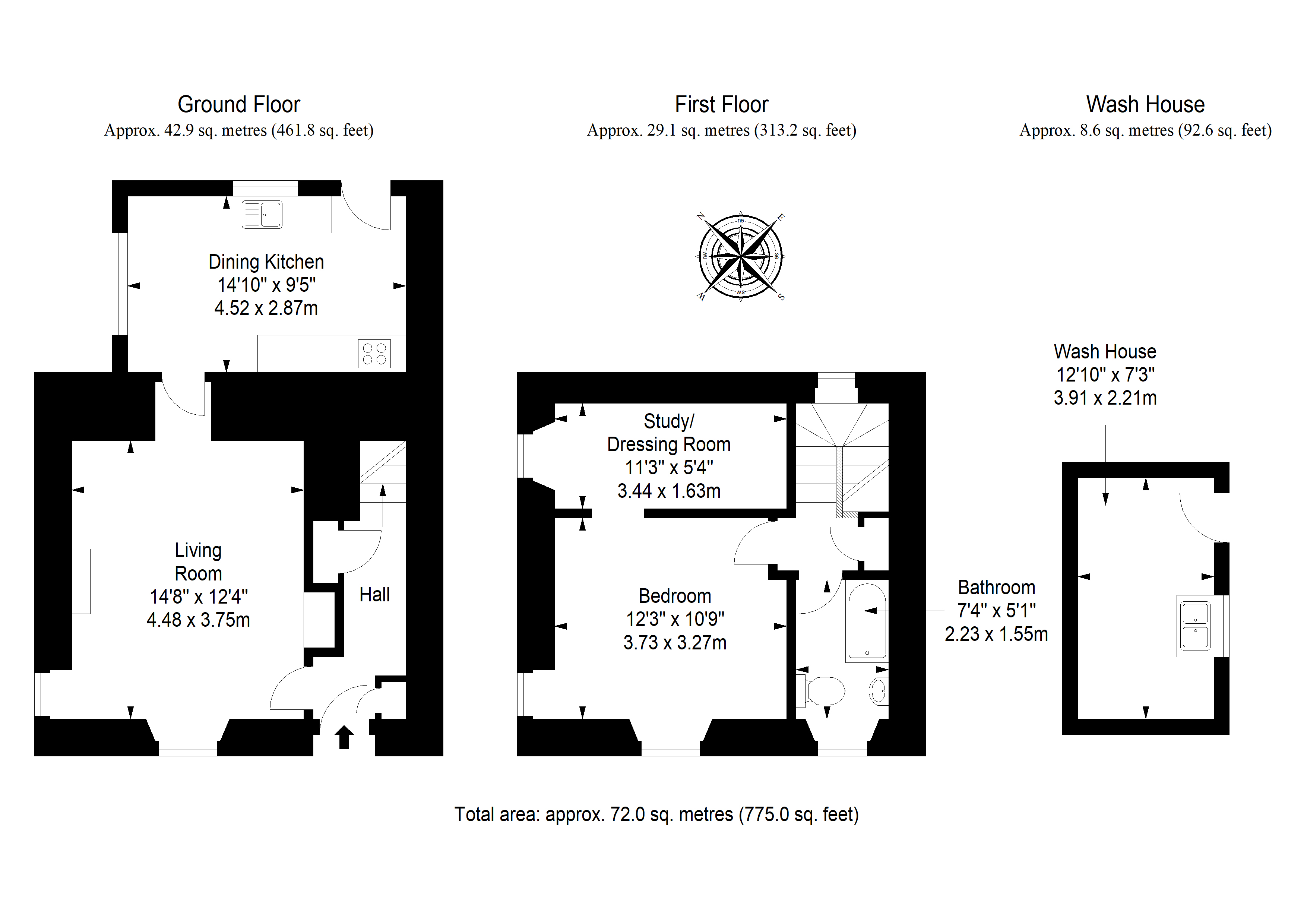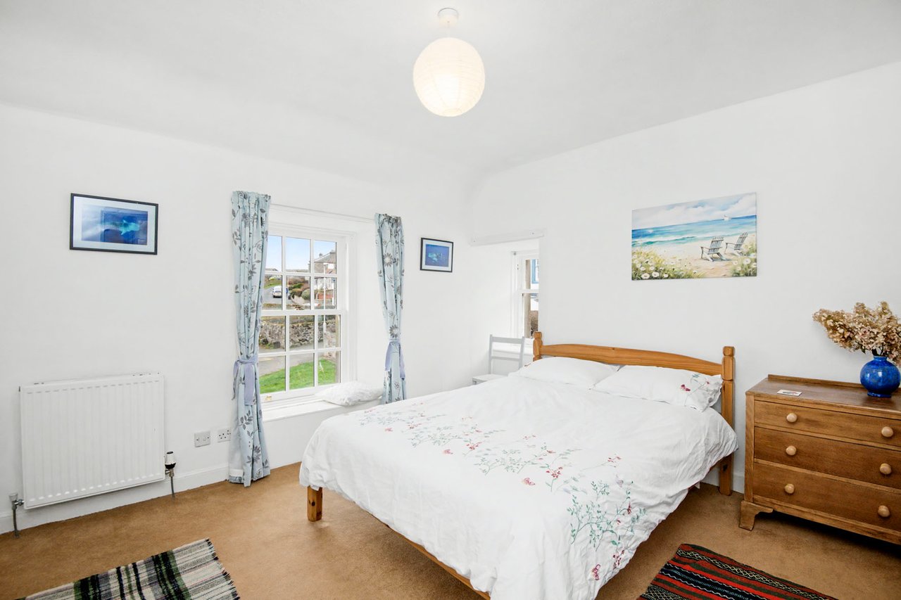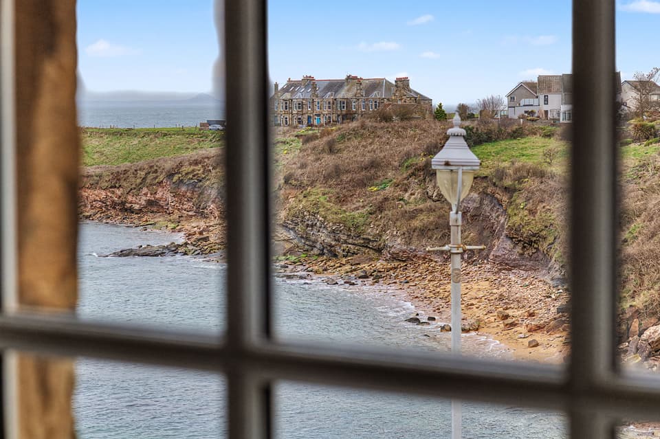 Tucked within the charming coastal East Neuk village of Crail, this B-listed 18th-century semi-detached home enjoys superb sea views and retains many historic features. It is in an exceptional position above the beach and harbour, both accessed via the Hen’s Ladder path. The bright, spacious dual-aspect living room has a solid wood floor and multi-fuel stove, and flows into a dining kitchen with rear garden access. The double bedroom with sunset views is complemented by a study/dressing room/child’s bedroom. The mature garden has sea views and a wash house providing ample storage. It has vehicle access for dropping-off, and on-street parking. Extras: All fitted floor and window coverings, light fittings, and appliances are included.
