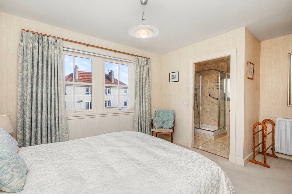 Nestled in the charming village of Crail, this three-bedroom main-door apartment enjoys a peaceful coastal setting. Located just moments from Crail’s historic harbour, beaches, and village amenities and built by renowned Headon Developments, this is an appealing coastal home or idyllic retreat. The bright, well-presented interiors include an open-plan living, dining, and quality German kitchen with quartz worktops, three double bedrooms with fitted wardrobes, including a principal room with en-suite shower room, and a family bathroom. Externally, the apartment forms part of a development with shared gardens and external storage, and parking for two vehicles.