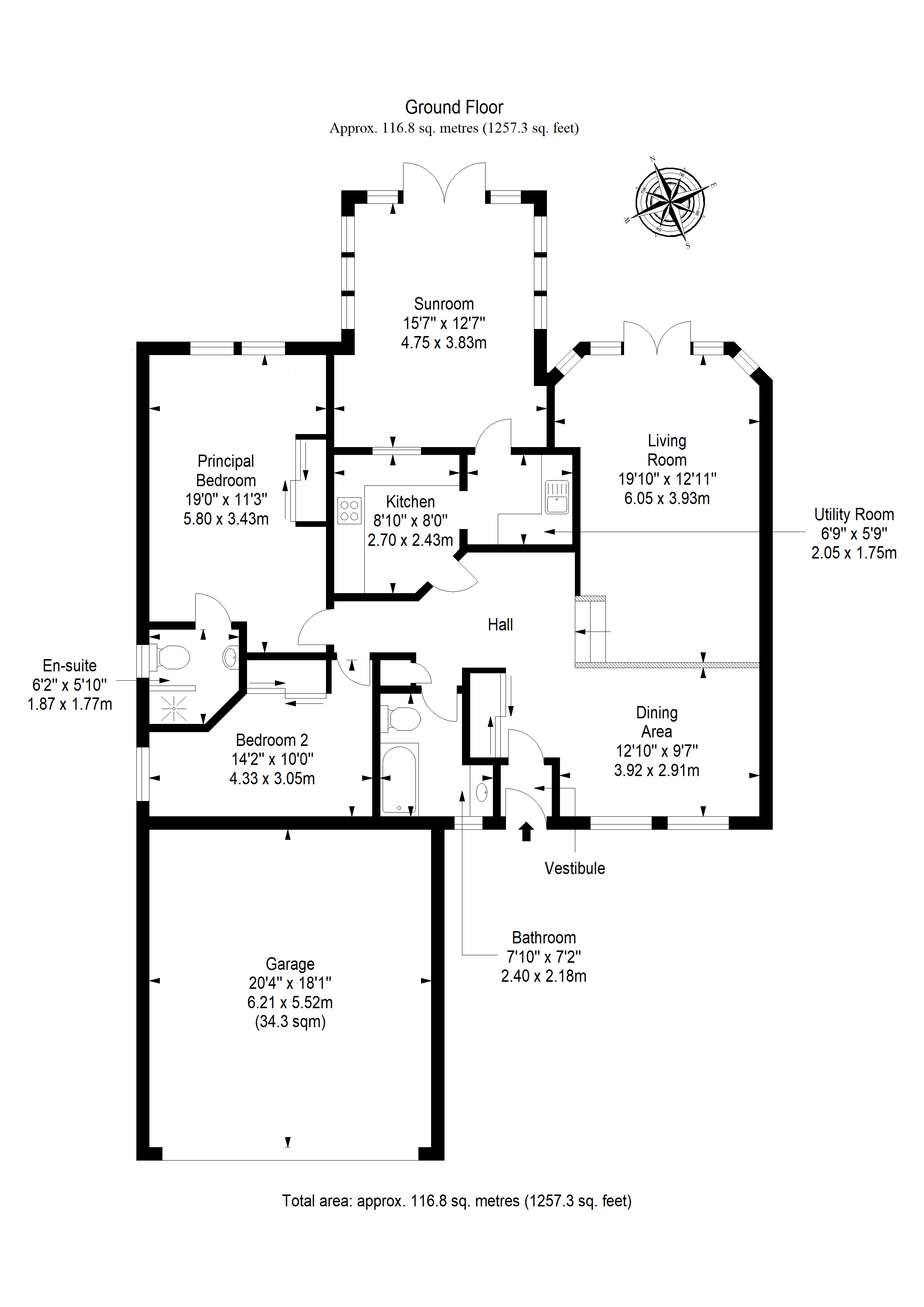 A spacious detached bungalow offering flexible, all-on-one-level accommodation. The property features generous living and dining areas with a small step down to the main living room, a bright sun room overlooking the rear garden and open countryside, two double bedrooms, en-suite shower room, separate bathroom, and a fitted kitchen with utility room. The home further benefits from double glazing, gas central heating, an integral garage and private gardens.