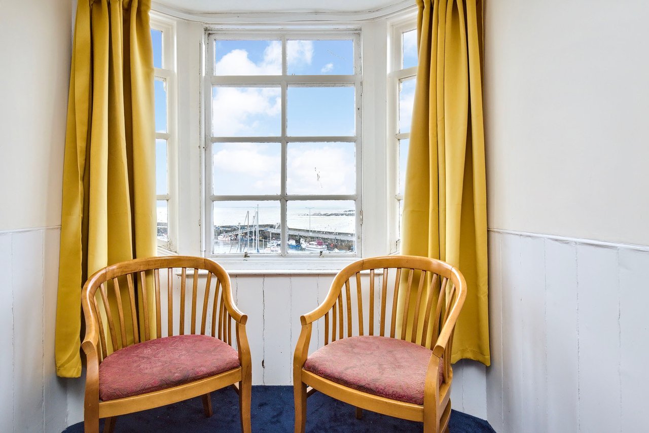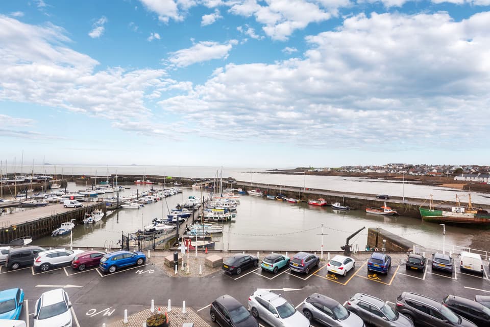 Occupying a prime harbourside position in the sought-after coastal town of Anstruther, this charming two-bedroom top-floor apartment enjoys panoramic views over the marina and harbour. Situated within a handsome traditional stone building, the property combines characterful period features with a bright, practical layout extending to approximately 70.9 sq. metres (763 sq. feet).