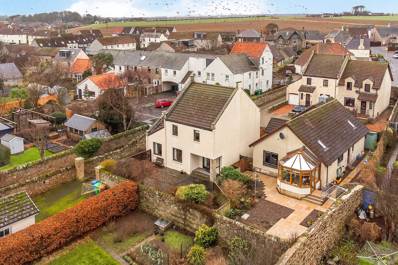 Enjoying a superb coastal setting close to Crail’s historic town centre, with beaches, scenic outdoor spaces and hiking trails all within easy reach, this detached home will appeal to a wide range of buyers. The accommodation includes two reception rooms, a breakfasting kitchen, three double bedrooms with built-in mirrored wardrobes, an en-suite shower room, a family bathroom, a utility room, a WC and excellent storage throughout. Externally, 4 Bowling Green Close benefits from private rear-enclosed gardens, along with a private driveway and garage.
