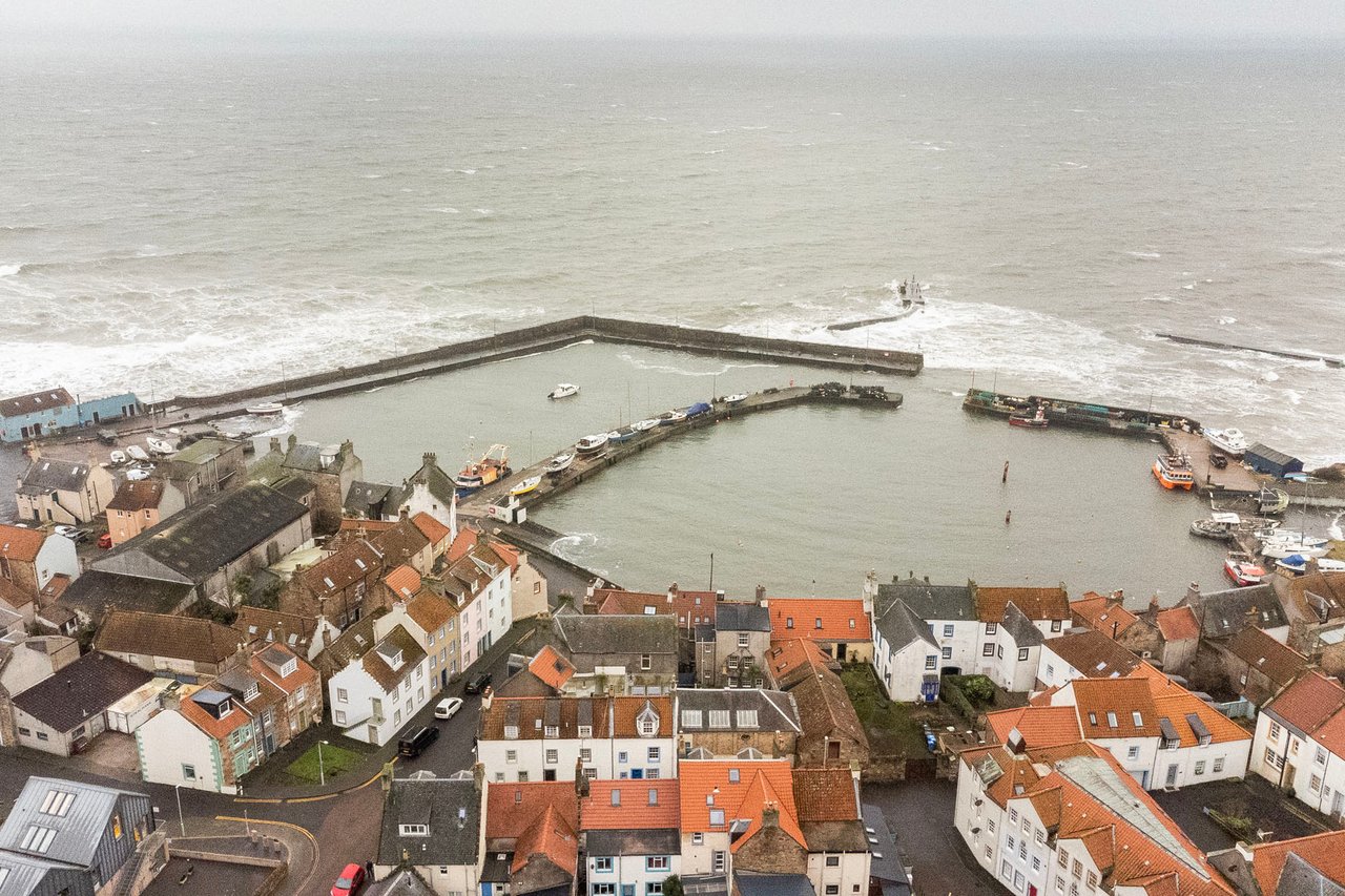 St Monans is a highly desirable East Neuk fishing village renowned for its historic harbour, coastal walks and attractive traditional cottages. Local amenities include cafés, hotel and primary schooling, with further facilities available in nearby Anstruther, Pittenweem and Crail. The area is well known for its scenic coastline, golf courses and outdoor pursuits. Dundee, St Andrews and Edinburgh are within commuting distance.