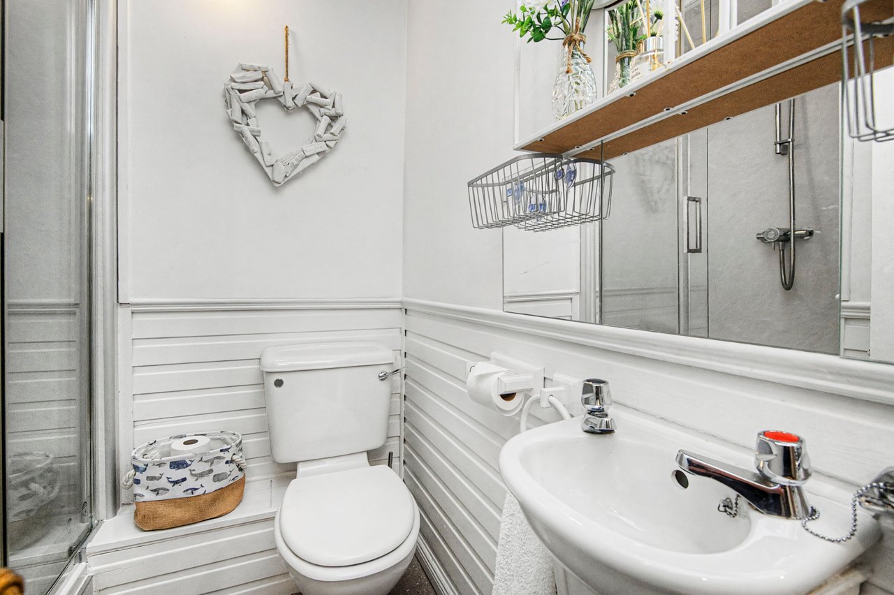 Shower room and separate bathroom.