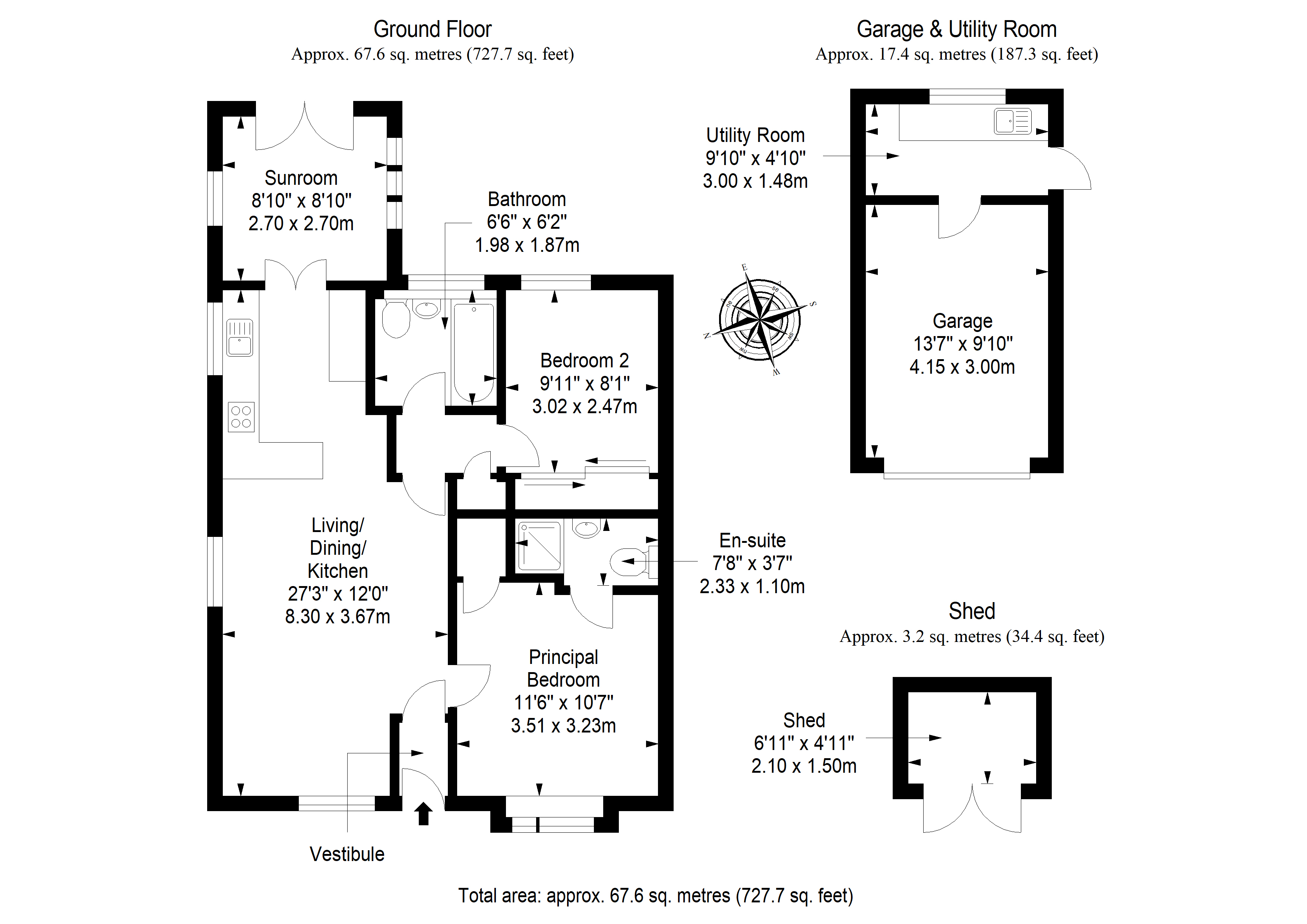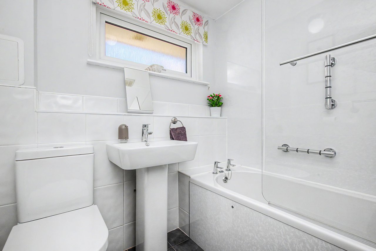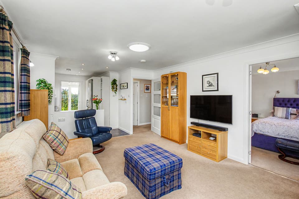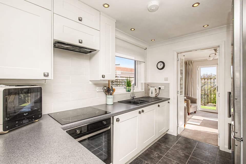 To the rear, a delightful sunroom provides a tranquil spot to relax while enjoying views over the garden, with direct access to the outdoors. The property features two well-proportioned bedrooms, including a generous principal bedroom with en-suite shower room, while a contemporary family bathroom serves guests and the second bedroom.