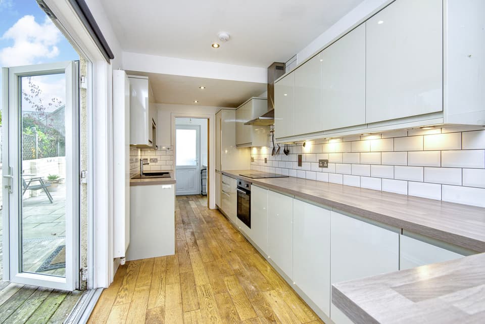 This surprisingly spacious mid-terrace family home in the attractive coastal village of Cellardyke stretches over three floors with beautifully presented interiors and sea views. The ground floor offers a generous open plan social space, flowing from a living room at the front, through a dining room, to a stylish integrated kitchen and utility room at the rear, as well as a bathroom. The first floor has one single and two double bedrooms, plus a shower room, and the second floor features two more double bedrooms and another bathroom. To the rear of the house are an enclosed patio garden and a two-storey outbuilding, with a garage, a store room, and development potential, subject to consents. Extras: All fitted floor and window coverings and light fittings are included.
