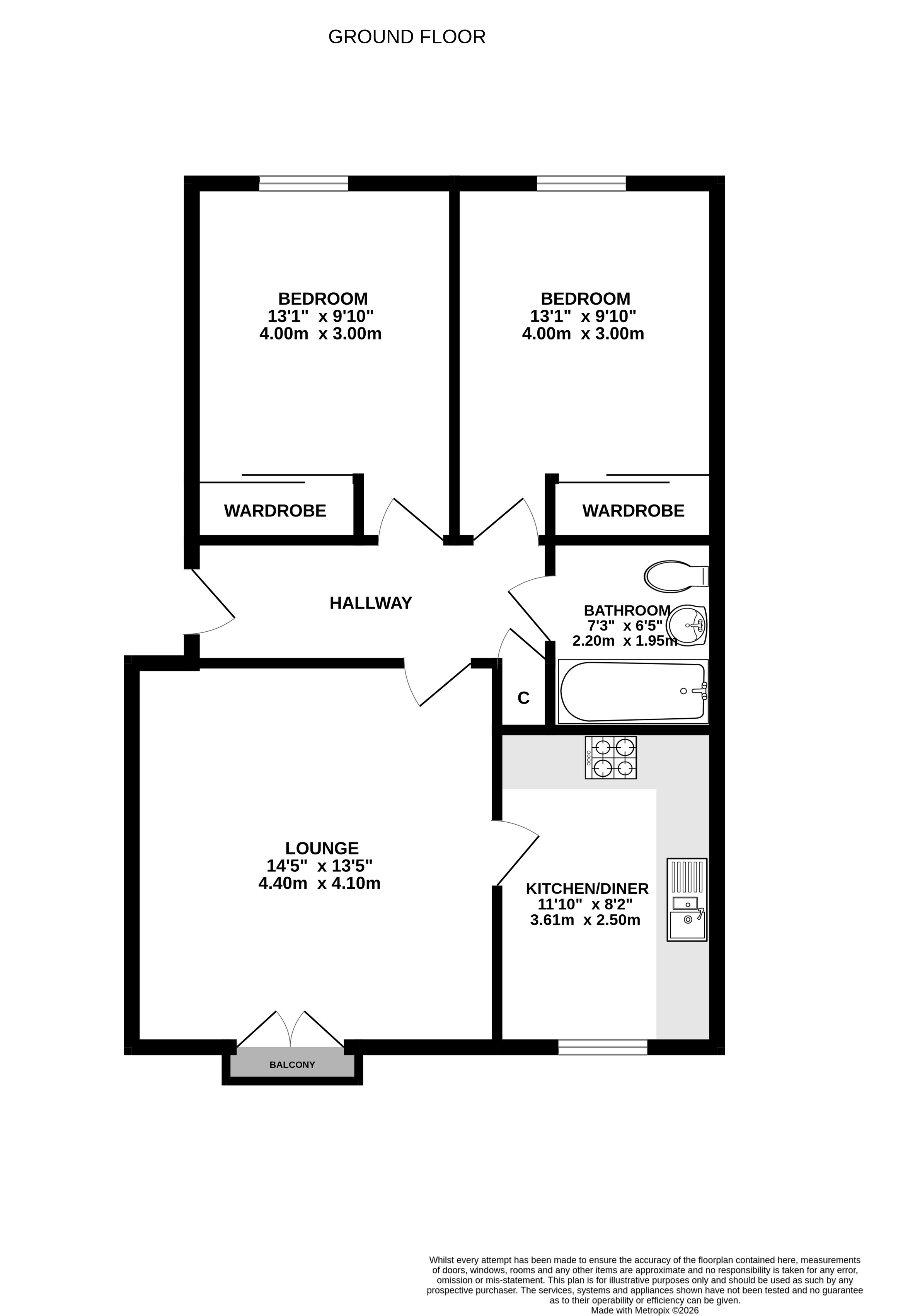 The property itself is in superb condition throughout and offers well proportioned accommodation comprising an entrance hall with useful storage, a bright and spacious lounge featuring a Juliet balcony, and a modern kitchen fitted with an array of wall and base units. The contemporary, partially tiled bathroom is fitted with a three piece suite, while both generously sized, carpeted bedrooms benefit from integrated mirrored wardrobes. Further features include gas central heating, double glazing, secure entry, wood panelled doors and a shared store. Blinds, curtains and floor coverings are included in the sale, along with integrated kitchen appliances comprising a gas hob, oven, extractor hood, fridge freezer and washing machine.