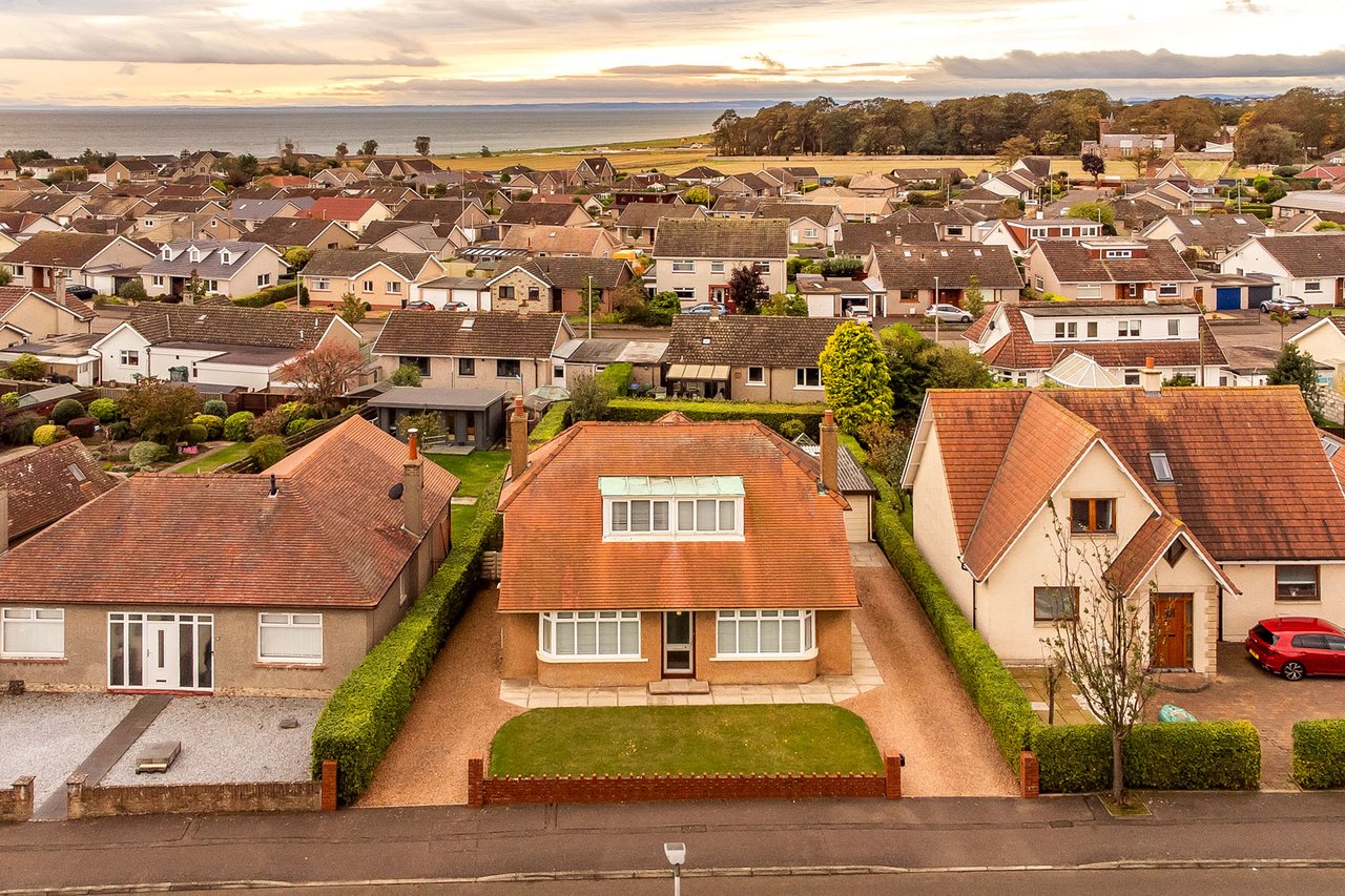 This charming detached villa offers a spacious three-bedroom, two-reception room home, set on a generous plot with a south-facing rear aspect, featuring immaculate gardens, two driveways, and a detached garage. The bright and airy interiors also offer an eat-in kitchen, a suntrap conservatory, a bathroom, an additional WC, and extra storage in the basement and eaves. Ideally situated in the seaside town of Arbroath, the property is within easy walking distance of the beach, as well as local shops and amenities, including schools and rail links that connect directly to Dundee and Aberdeen within an hour.
