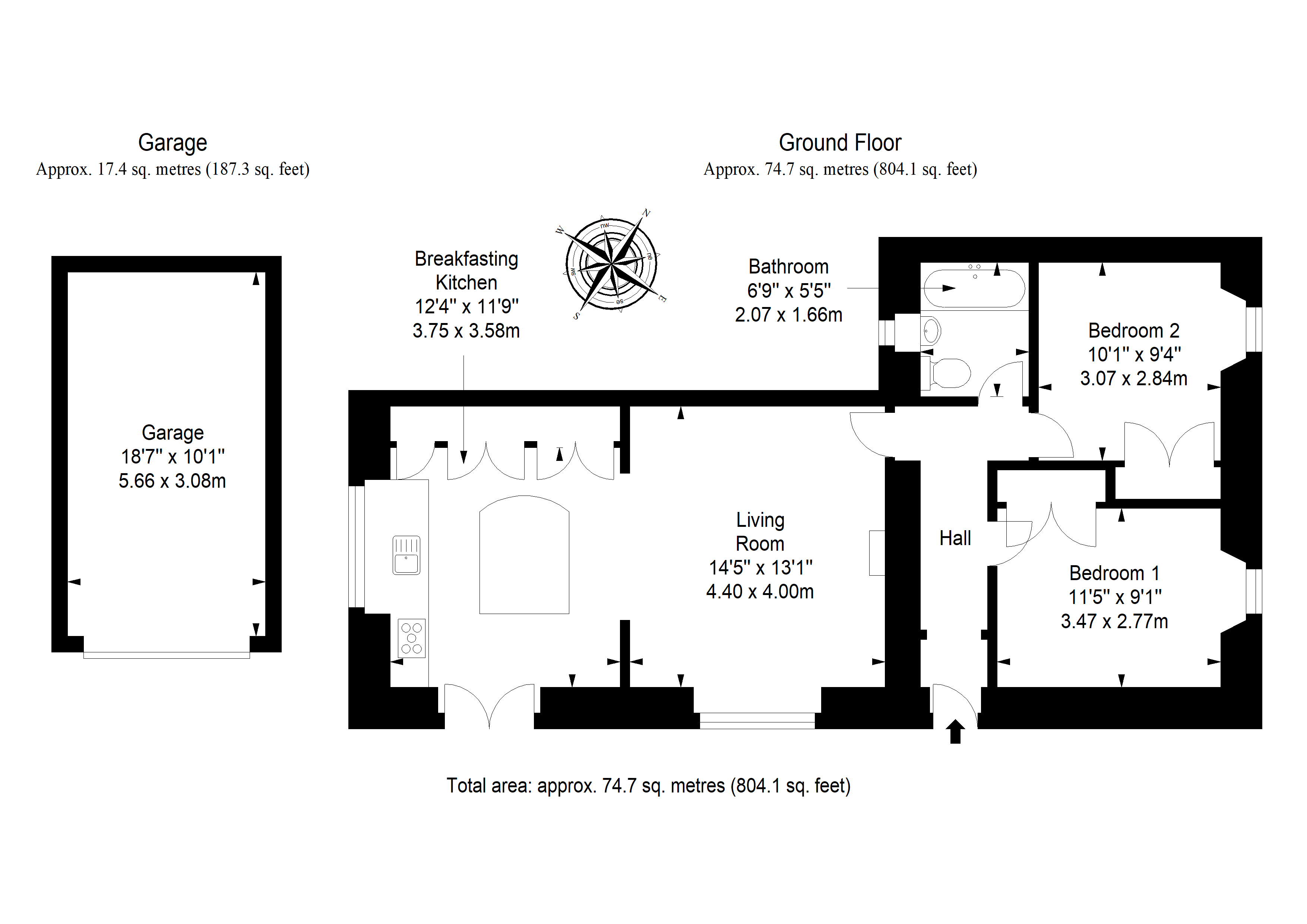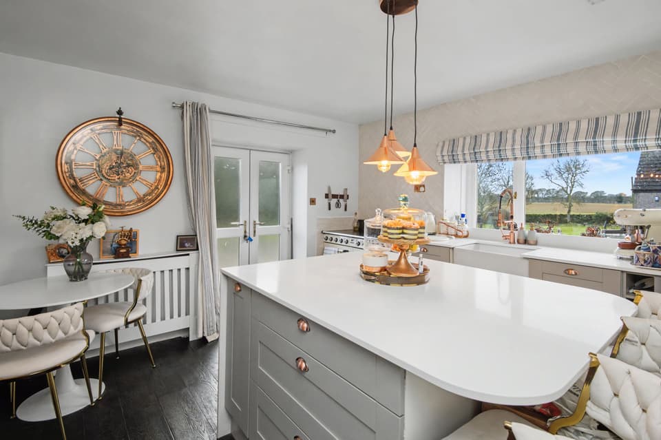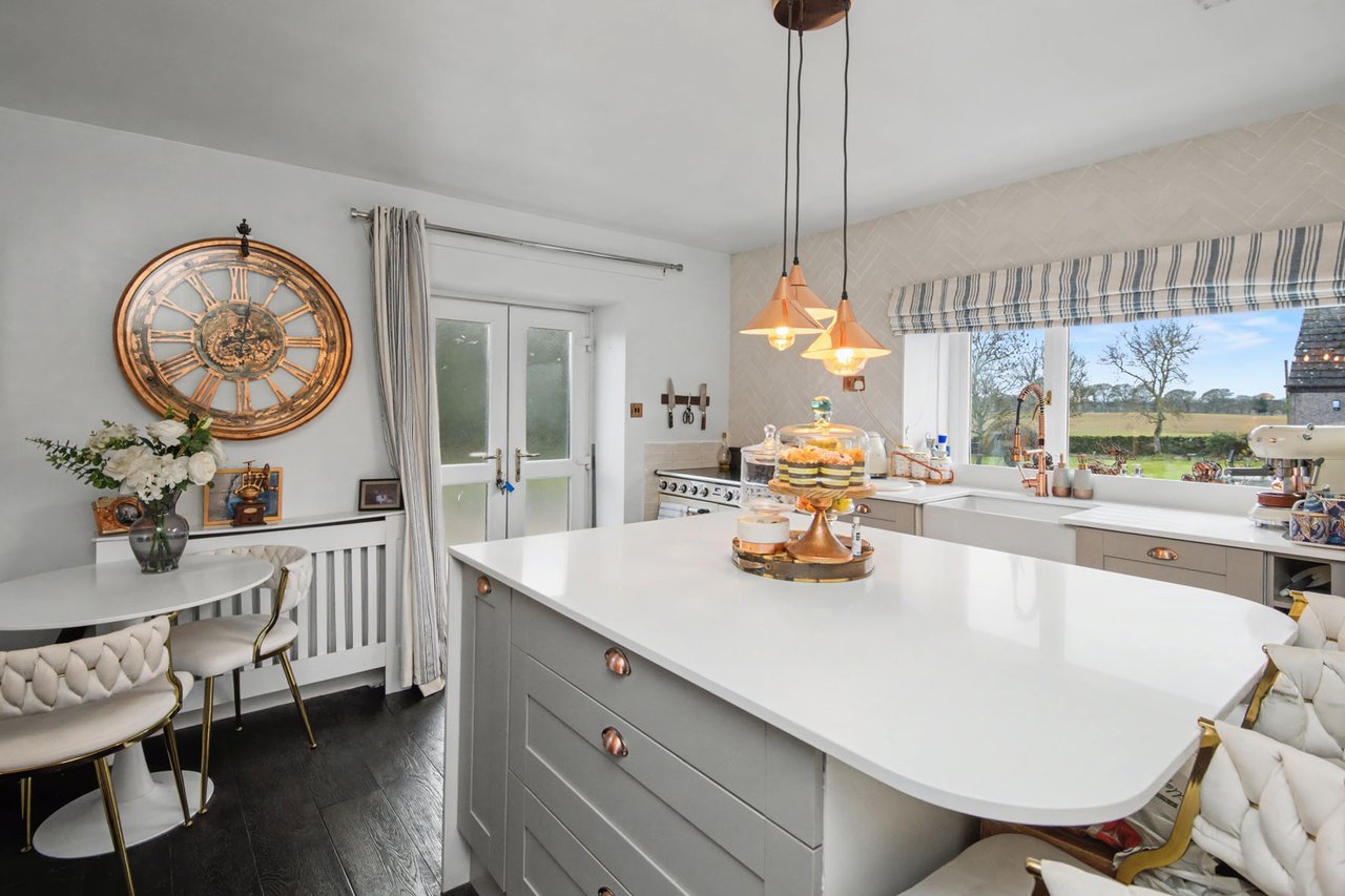 Welcome to 2 Priestfield Cottage, a beautifully presented semi-detached traditional bungalow in the sought-after rural village of Inverkeilor, enjoying an attractive countryside outlook. This stylish home offers a sunny living room with a fireplace, open to a contemporary breakfasting kitchen with quality finishes and French doors to the garden. Two generous double bedrooms with built-in storage and a luxurious bathroom with a freestanding tub, a towel warmer and a rectangular sink complete the accommodation. Externally, there are private gardens with seating areas, a private drive, and garage parking.