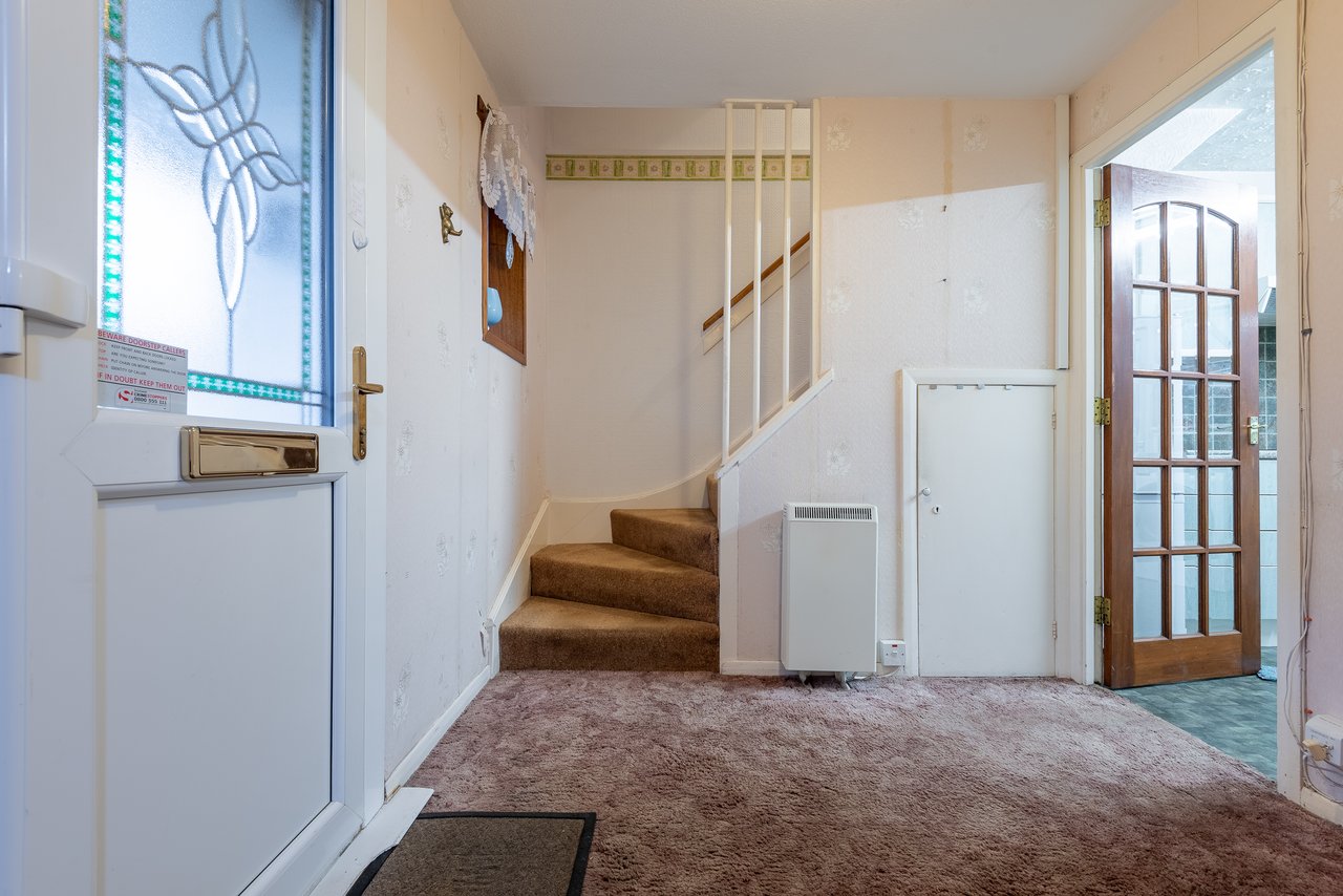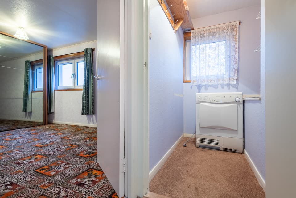Externally, both front and rear gardens are laid out for ease of maintenance, with various shrubs to the front and a drying green and timber shed to the rear.