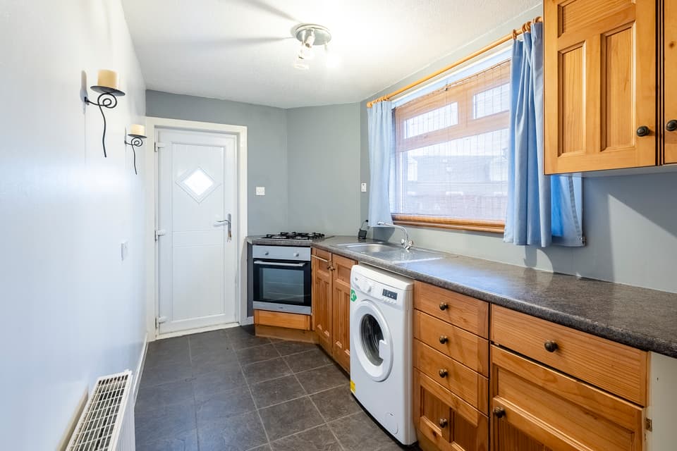 The property provides attractive accommodation over two levels. On the ground floor, an entrance vestibule opens into a spacious lounge featuring a large front facing window, along with a well appointed kitchen fitted with an array of wall and base units.