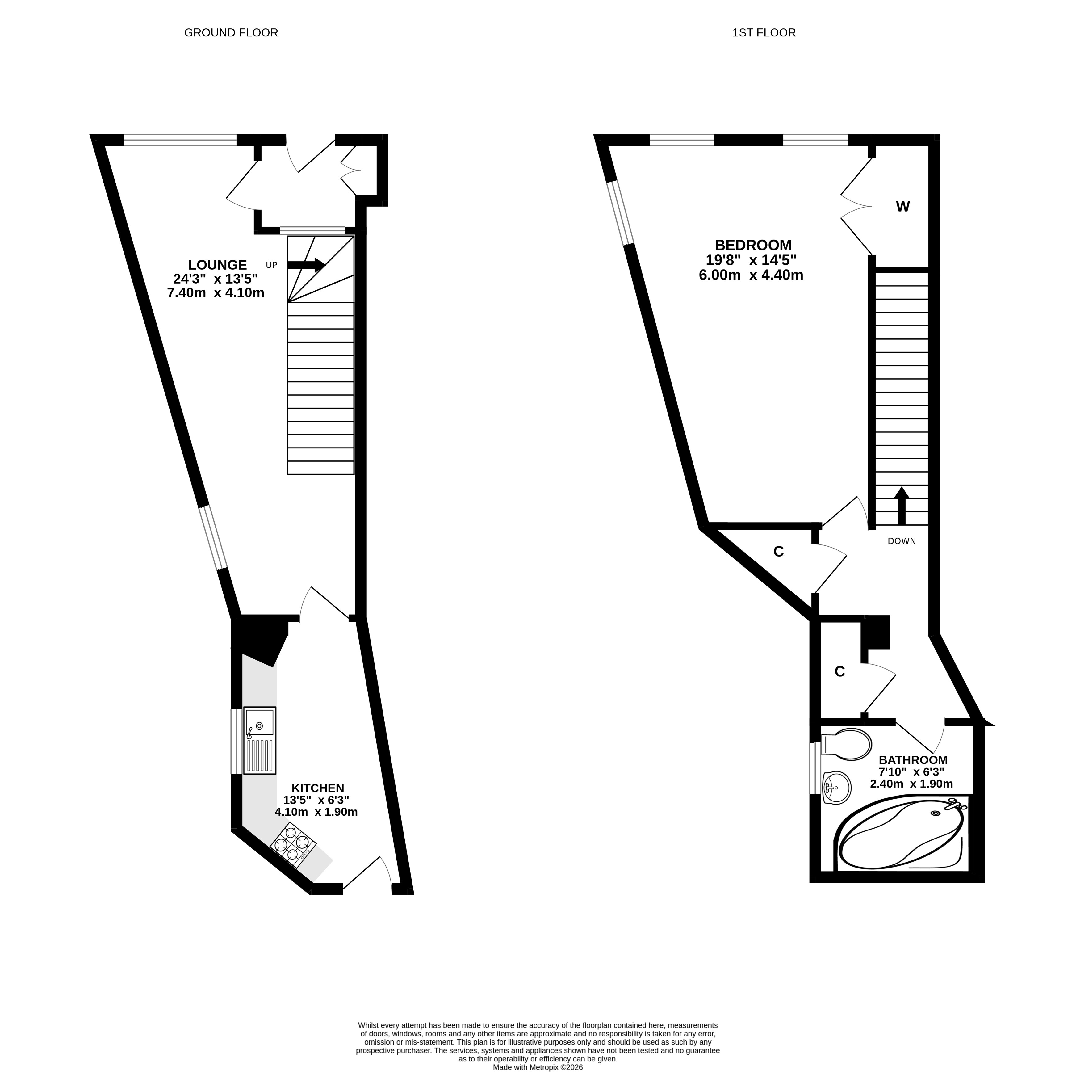 - Kitchen: 13' 9" x 6' 1" (4.19m x 1.85m)