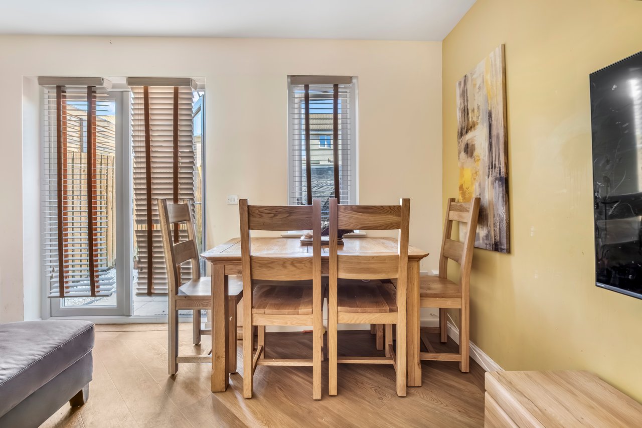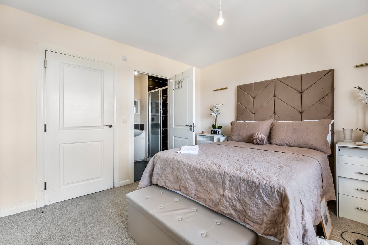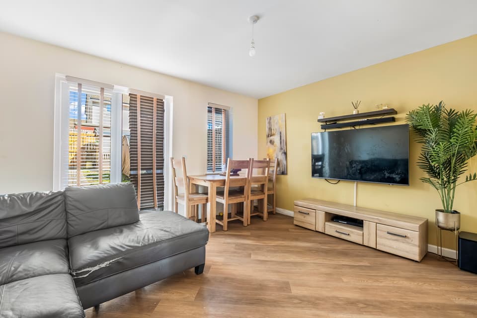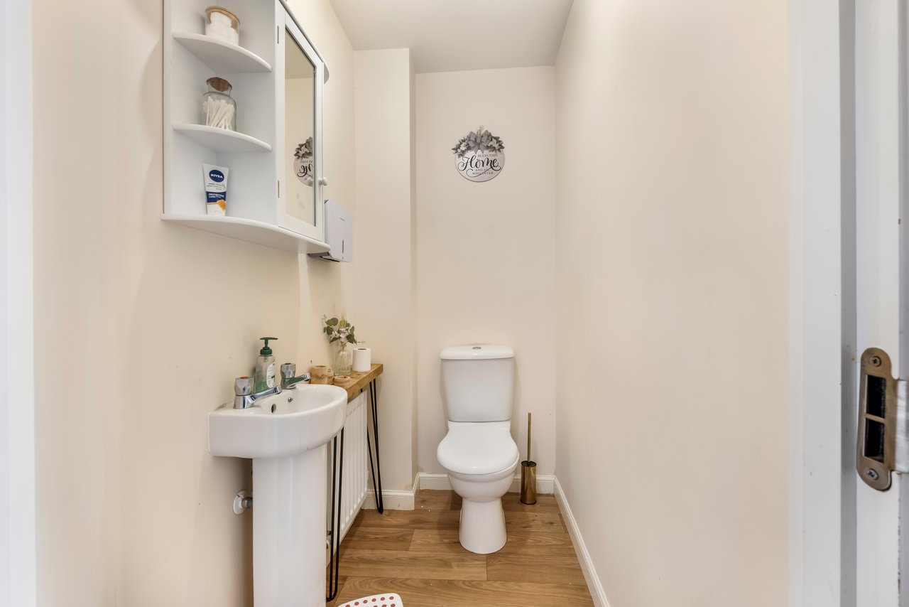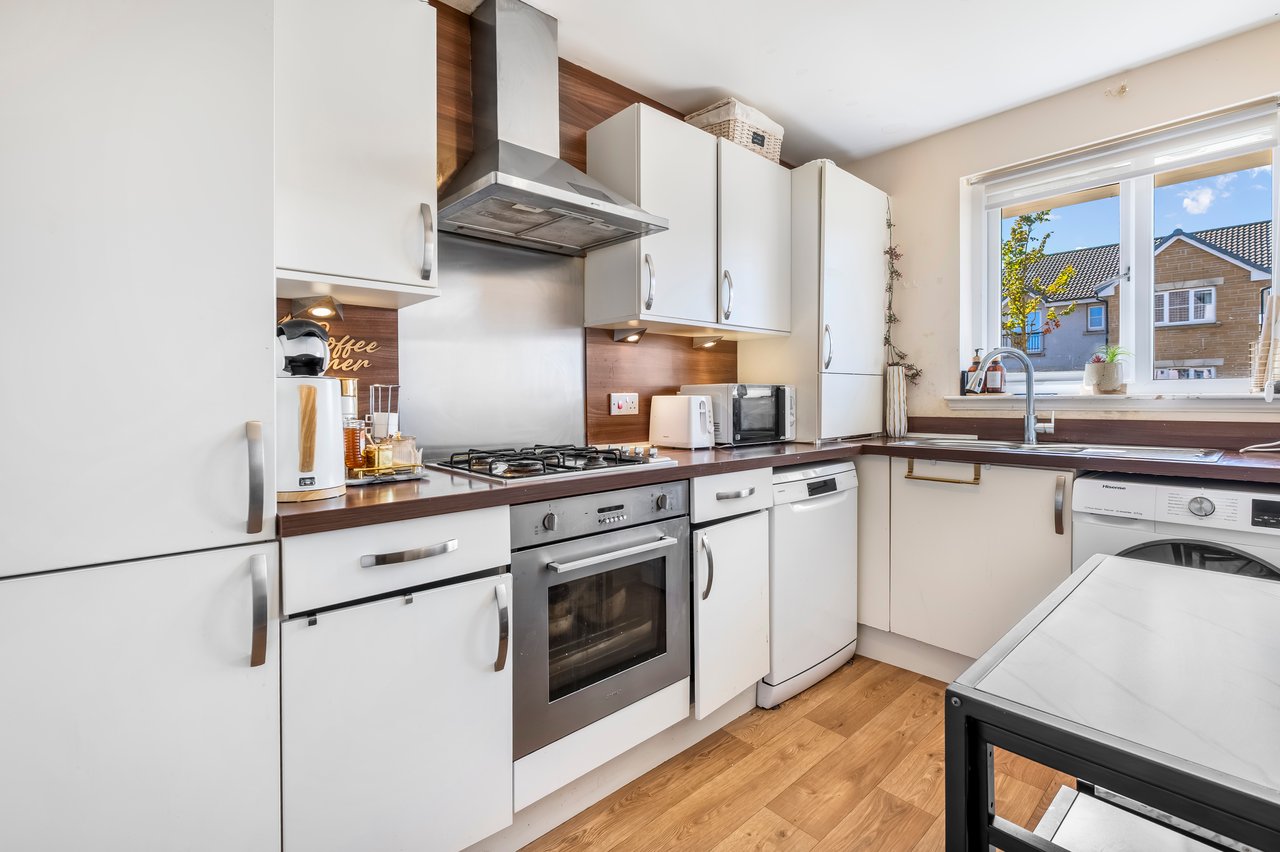 The entrance hallway provides useful storage and leads to a convenient W/C with a modern two piece suite. The attractive lounge enjoys an abundance of natural light and features patio doors opening directly onto the rear garden. The dining kitchen is fitted with quality wall mounted and base units, complete with oven, hob, extractor hood and integrated fridge freezer. The family bathroom is fitted with a three piece suite, and there are four carpeted bedrooms all benefitting from integrated storage. The master bedroom is further enhanced by its own en suite shower room. All floor coverings and blinds are included in the sale together with the Dishwasher and Washing/Dryer machine & Fridge Freezer.