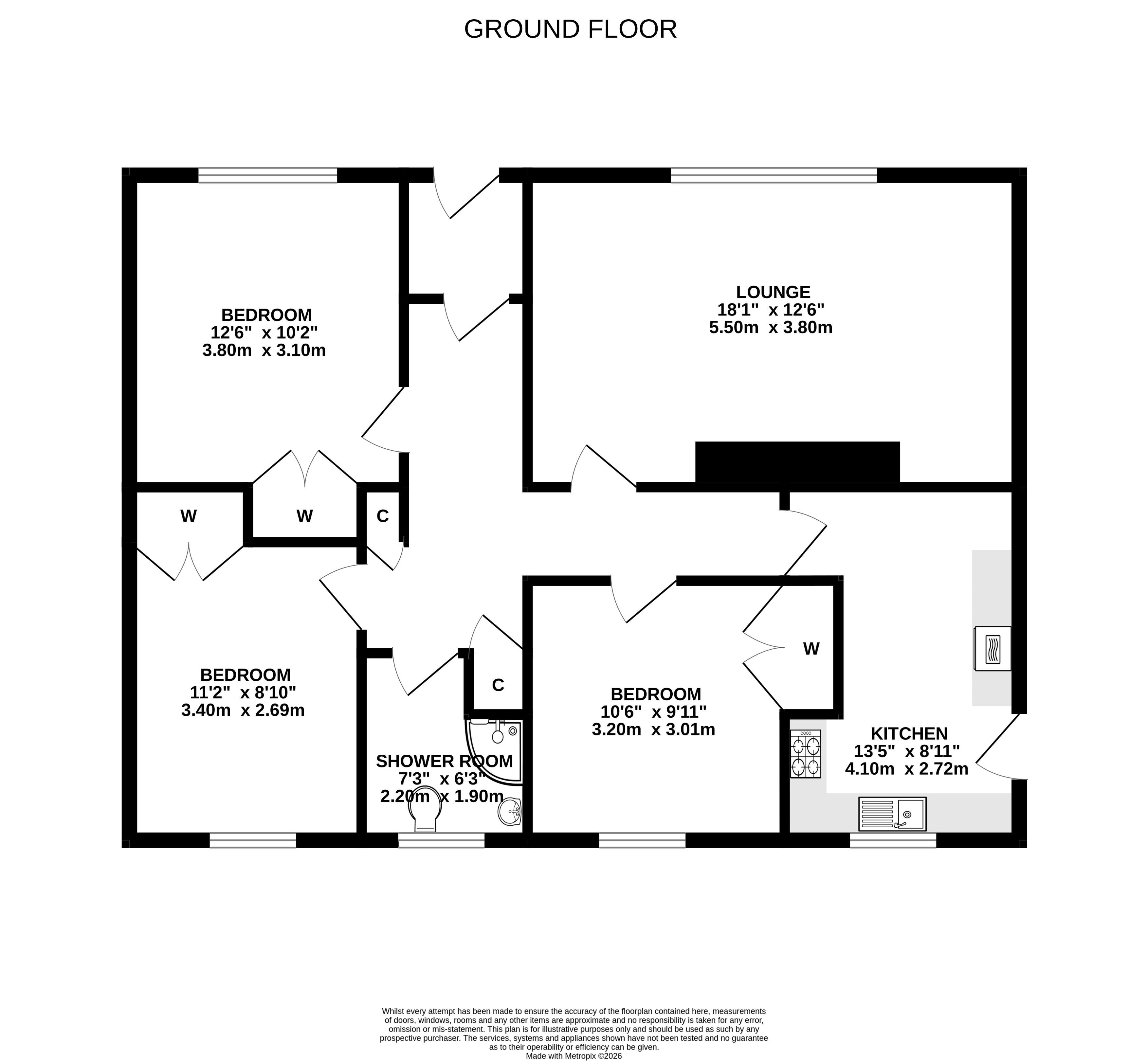 There are three well proportioned bedrooms, each featuring fitted storage, and the accommodation is completed by a partially tiled shower room.
