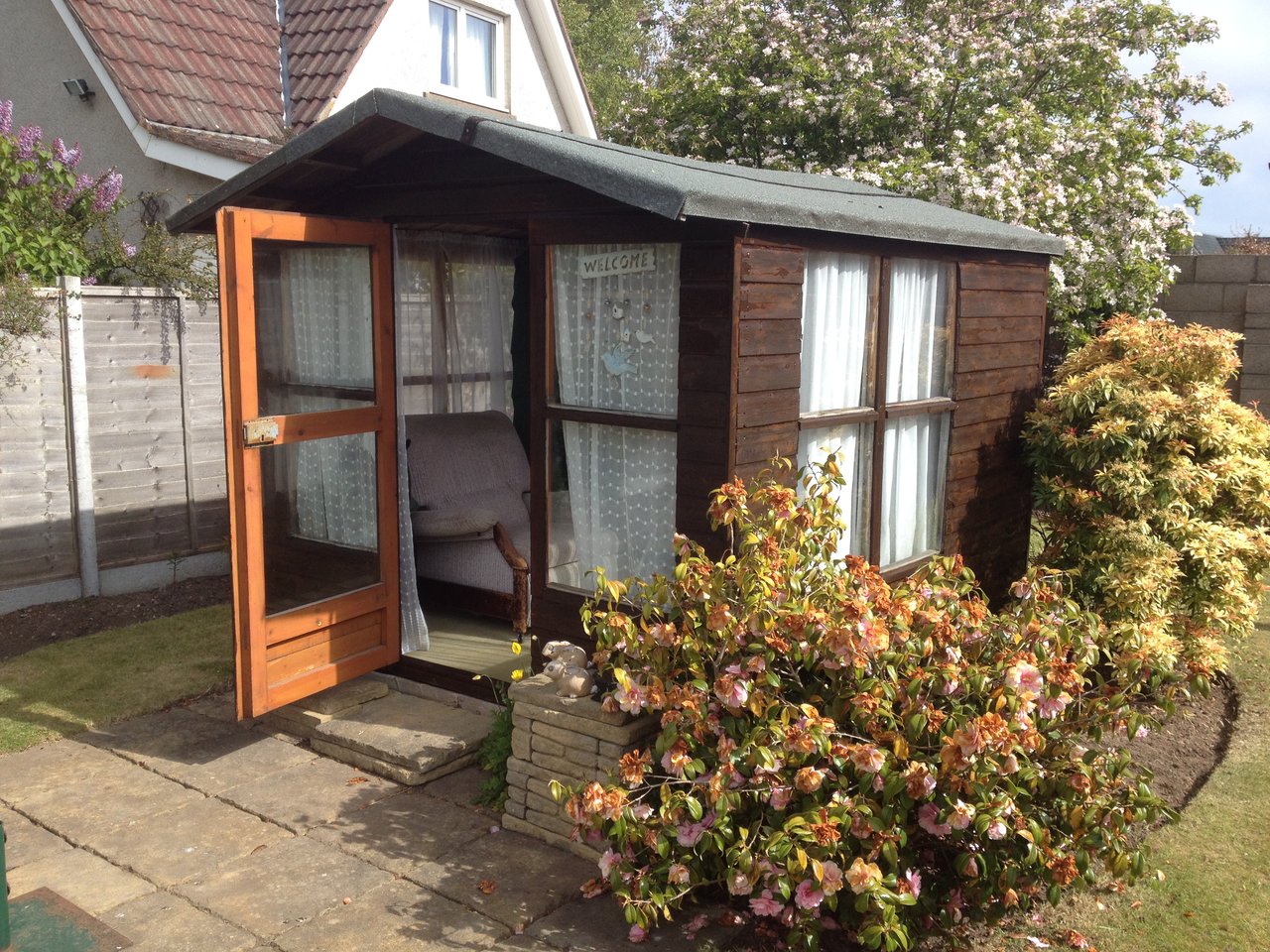 Externally, the front garden is laid to lawn with mature planting. A monoblocked driveway to the side leads to a garage, providing ample off street parking. The enclosed rear garden is ideal for outdoor enjoyment, featuring a lawn, paved patio area, and a summerhouse.
