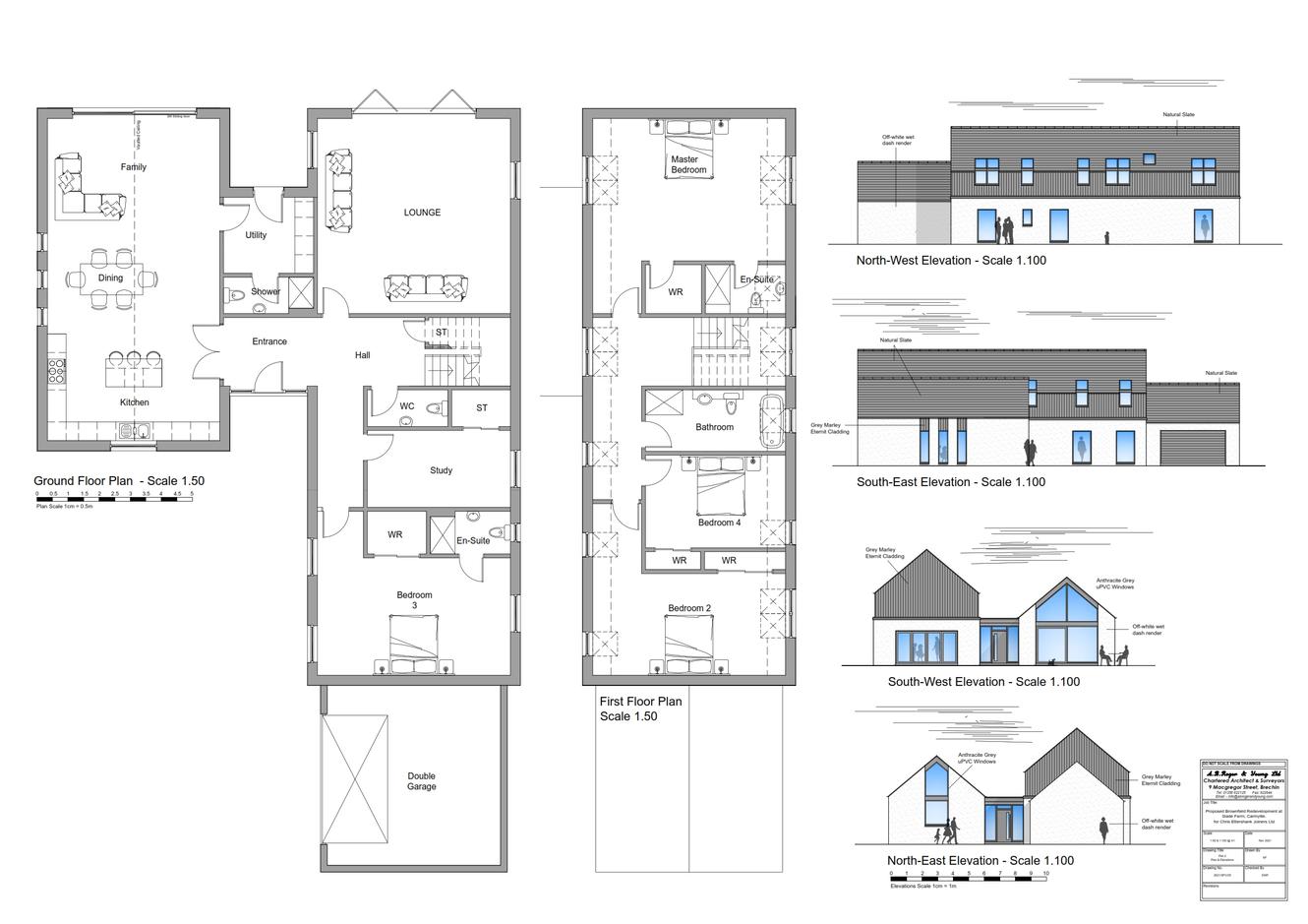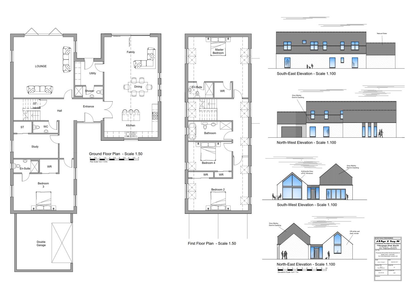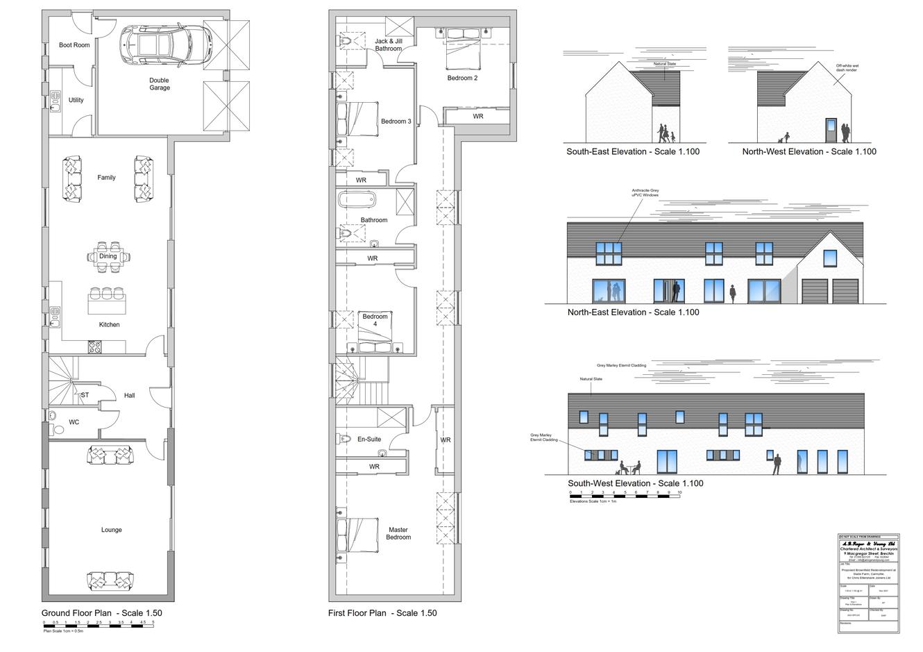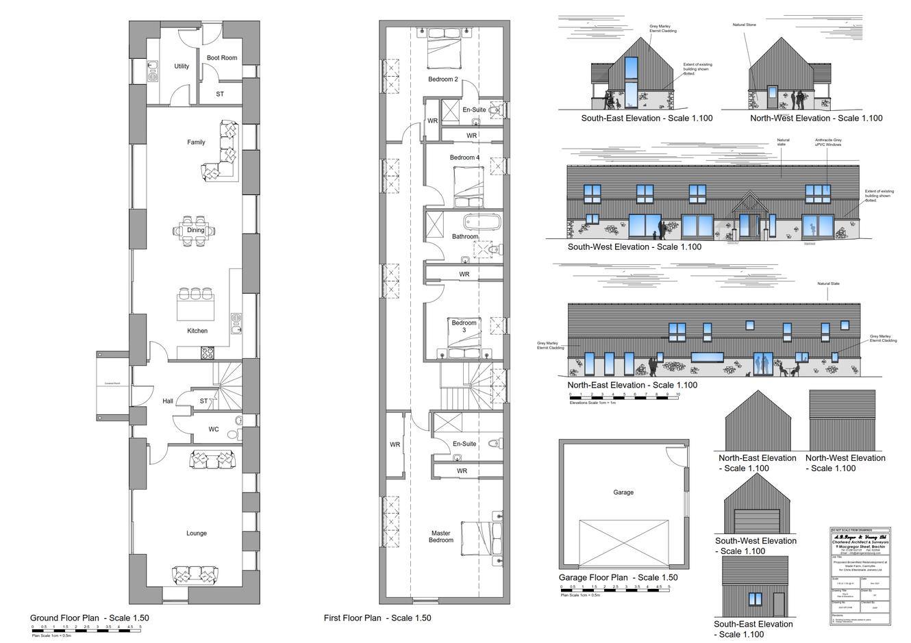 The plot areas are from 1400m² up to 4525m² whilst the five houses range in size from 249m² up to 293m² with an average garage size of around 30m². Electricity and water are located nearby, drainage is via a SUDS pond and septic tanks that are required to be installed.