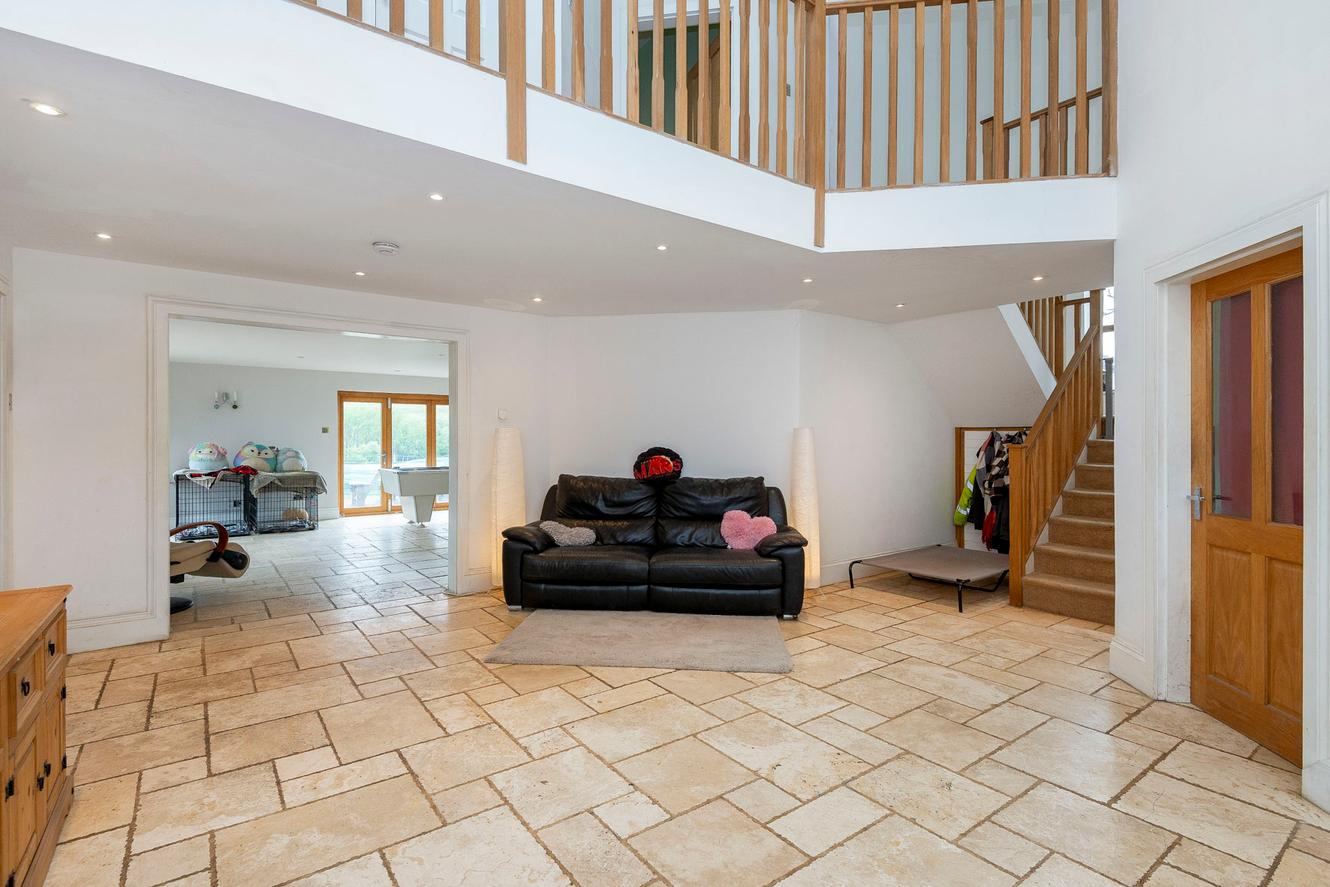 The home provides two dedicated reception areas that are both impressively large. The living/games/sitting room is the sociable hub that caters to every occasion. It has a substantial footprint and is brightly illuminated by triple-aspect glazing, which includes two sets of bi-folding doors flowing out into the garden – perfect for summer soirees. A tasteful accent wall adds a splash of colour to the decoration, with the space inviting you to sit back and relax whilst admiring the panoramic country views. On the first floor, a self-contained family room is accessed via its own staircase which is connected to the west wing of the home. Also with triple-aspect windows and inspiring views, this room provides a more intimate setting for unwinding with family and friends. Alternatively, it would make a fantastic guest’s bedroom as well.