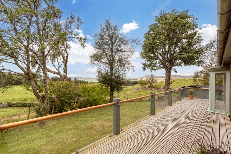 Immersed in the beautiful Perth and Kinross countryside, Dysters Hillock is a truly unique property that has been recently modernised and boasts beautifully presented, contemporary interiors and stylish décor. The two-bedroom, two-bathroom bungalow is set on a plot of approximately half an acre with a deck, lovely gardens, and stunning countryside views.