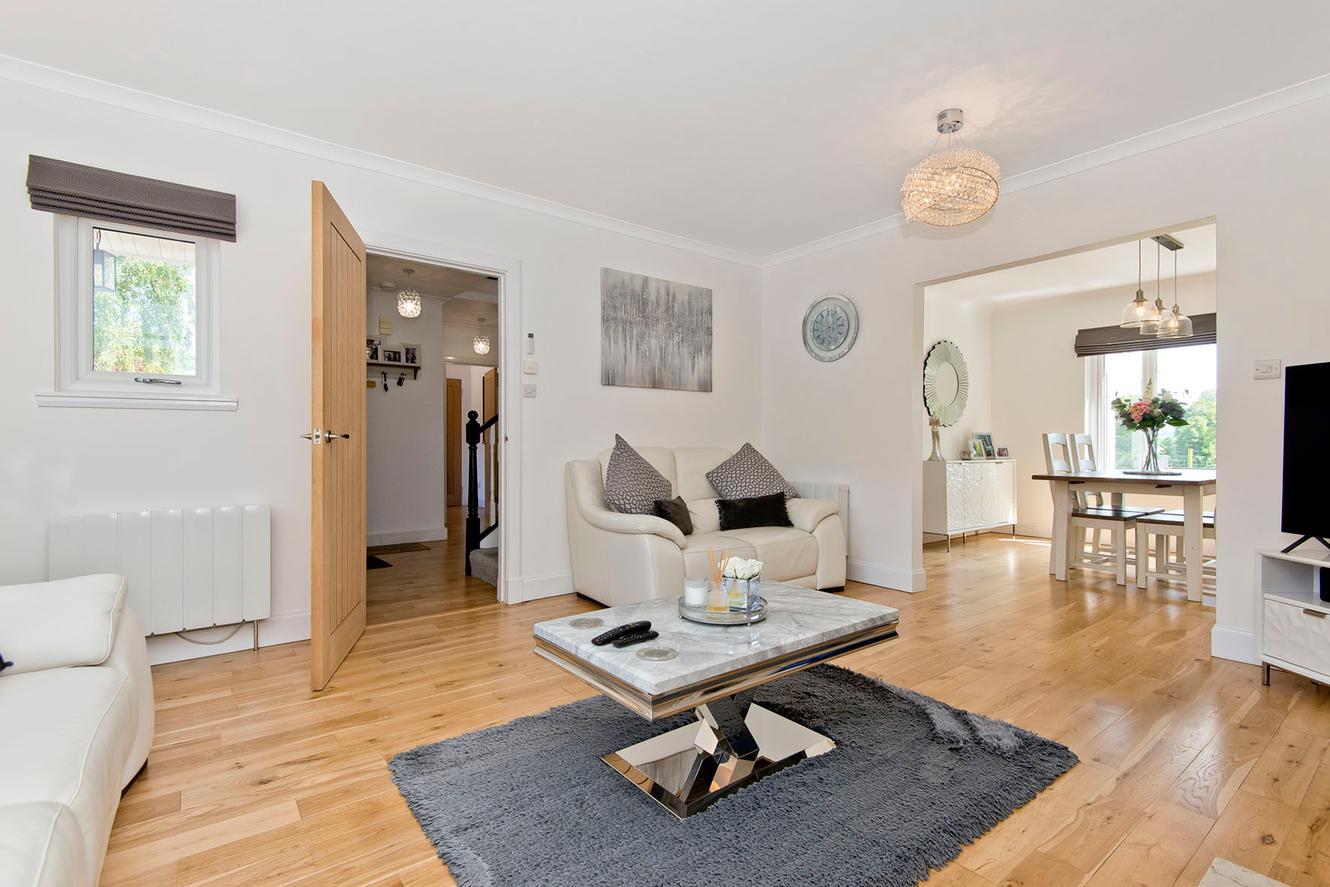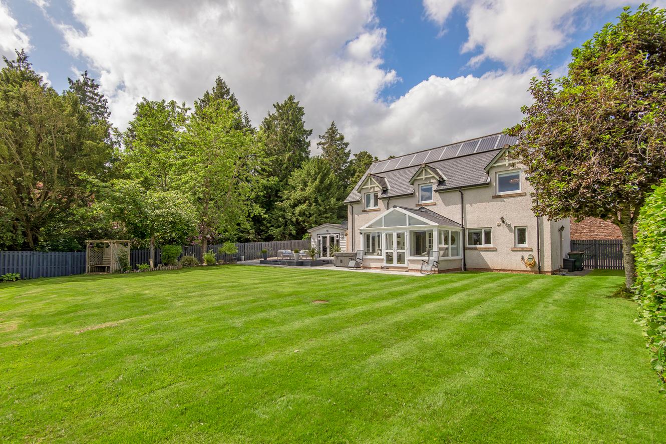 This generous detached house is tucked in a quiet corner of a small, exclusive development just outside Meigle, enjoying four bedrooms, three reception areas, and two bathrooms (plus a separate WC), as well as beautifully landscaped gardens with an external games room/bar, a detached double garage, and a large multi-car driveway.