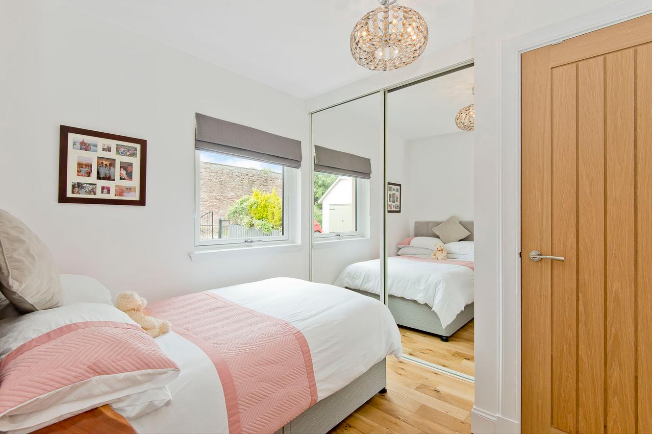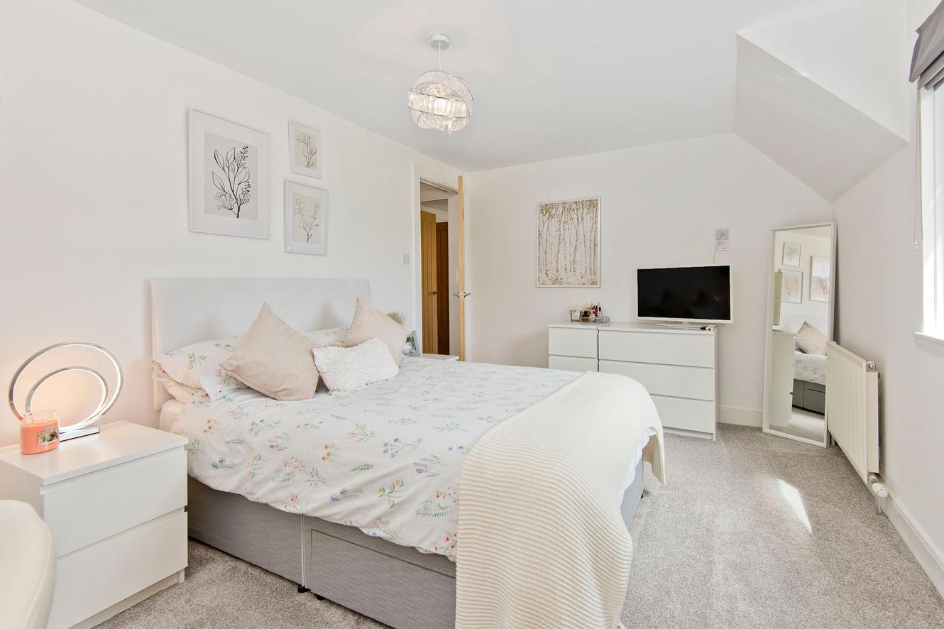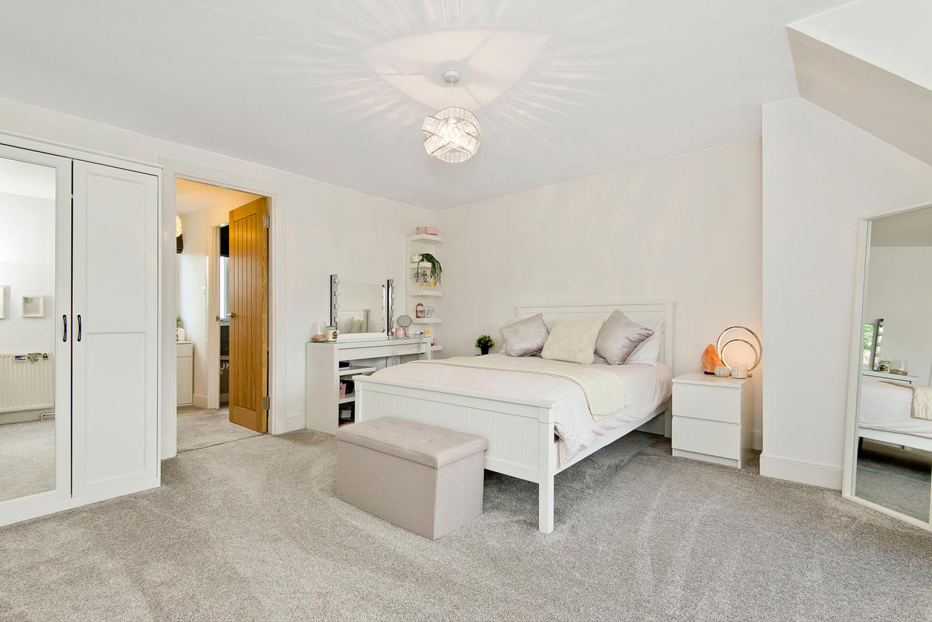 The home accommodates four well-proportioned end elegant double bedrooms, with one on the ground floor and the remaining three on the first floor, approached via a staircase and landing with built-in storage. The ground-floor bedroom is supplemented by a built-in wardrobe with mirrored sliding doors and an additional cupboard, and could lend itself perfectly to a study, ideal for those requiring a quiet space to work or study from home. The remaining bedrooms are all carpeted for optimum comfort underfoot, and the principal has its own en-suite shower room. The other two bedrooms share a Jack-and-Jill en-suite and a dressing room with fitted storage.