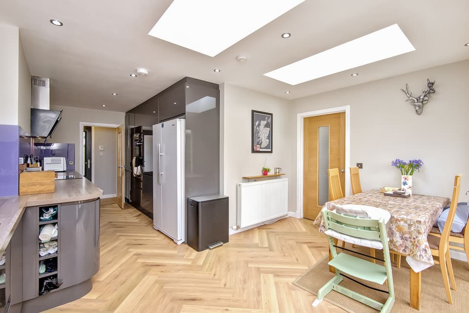 Set within scenic countryside, yet less than 30 minutes’ drive from central Dundee, the generous three-bedroom, two-bathroom detached bungalow in Kirkinch is sure to appeal to a wide range of buyers. The home further boasts a sunny and spacious living room with a log burner, dual-aspect windows and French doors to the garden, as well as an ultra-modern sky-lit kitchen with sleek cabinetry, handy utility room and space for seated dining. Outside, there is ample parking, including a large driveway and double garage, plus generous gardens with outdoor seating space, a BBQ and well-kept lawns. Extras: All fitted floor and window coverings, light fittings and integrated kitchen appliances are included in the sale.