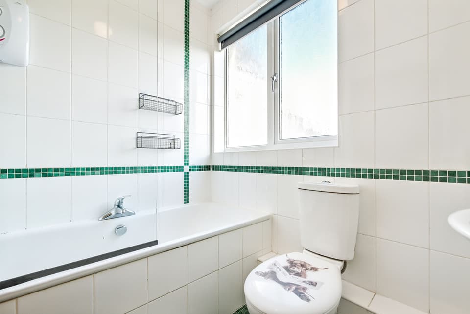 Bright bathroom with shower-over-bath