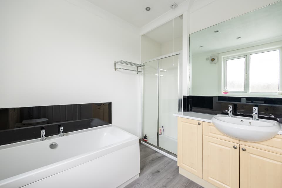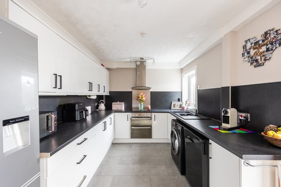 This well-presented end-terraced villa offers spacious and modern accommodation over two levels, with a large outbuilding converted into a gym. The ground floor features a bright entrance porch, a generous living/dining room with storage, a modern fitted kitchen leading to a rear conservatory, and a stylish downstairs shower room. Upstairs comprises a master bedroom with en-suite bathroom (including separate shower cubicle), a second double bedroom, and access to the attic for additional storage. The home benefits from gas central heating (combi boiler) and double glazing throughout.