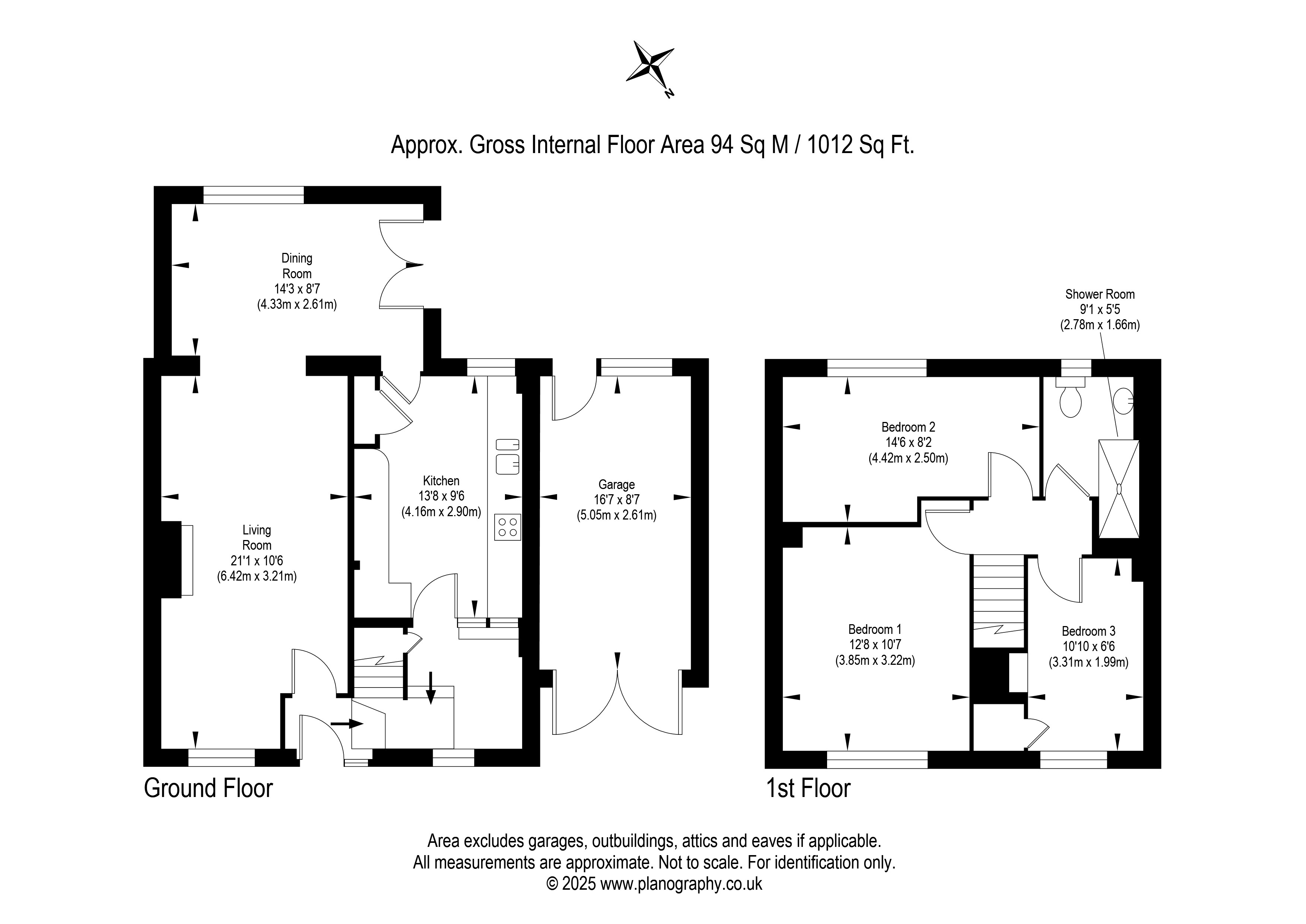 - Shower Room: 9' 1" x 5' 5" (2.77m x 1.65m)