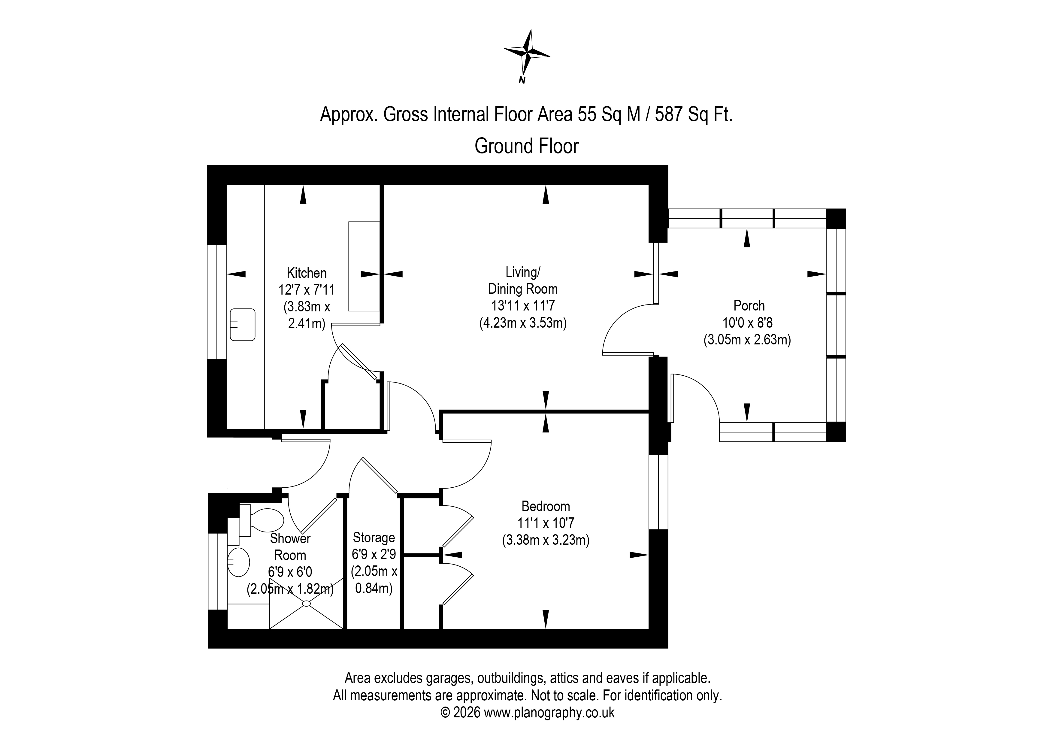 The accommodation comprises an entrance hall with storage, a spacious living/dining room with conservatory off, a good-sized kitchen, a generous double bedroom, and shower room. Additional benefits include private gardens to the front and rear, gas central heating and double glazing.
