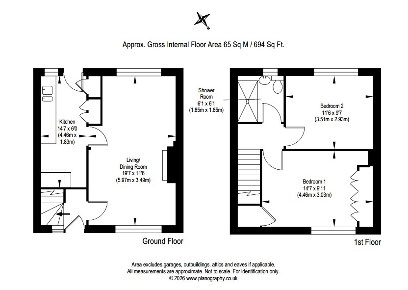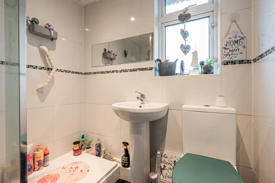 Upstairs, there are two generous double bedrooms, one of which benefits from a built-in cupboard for additional storage. The contemporary shower room completes the first-floor accommodation. An attic provides further useful storage space.