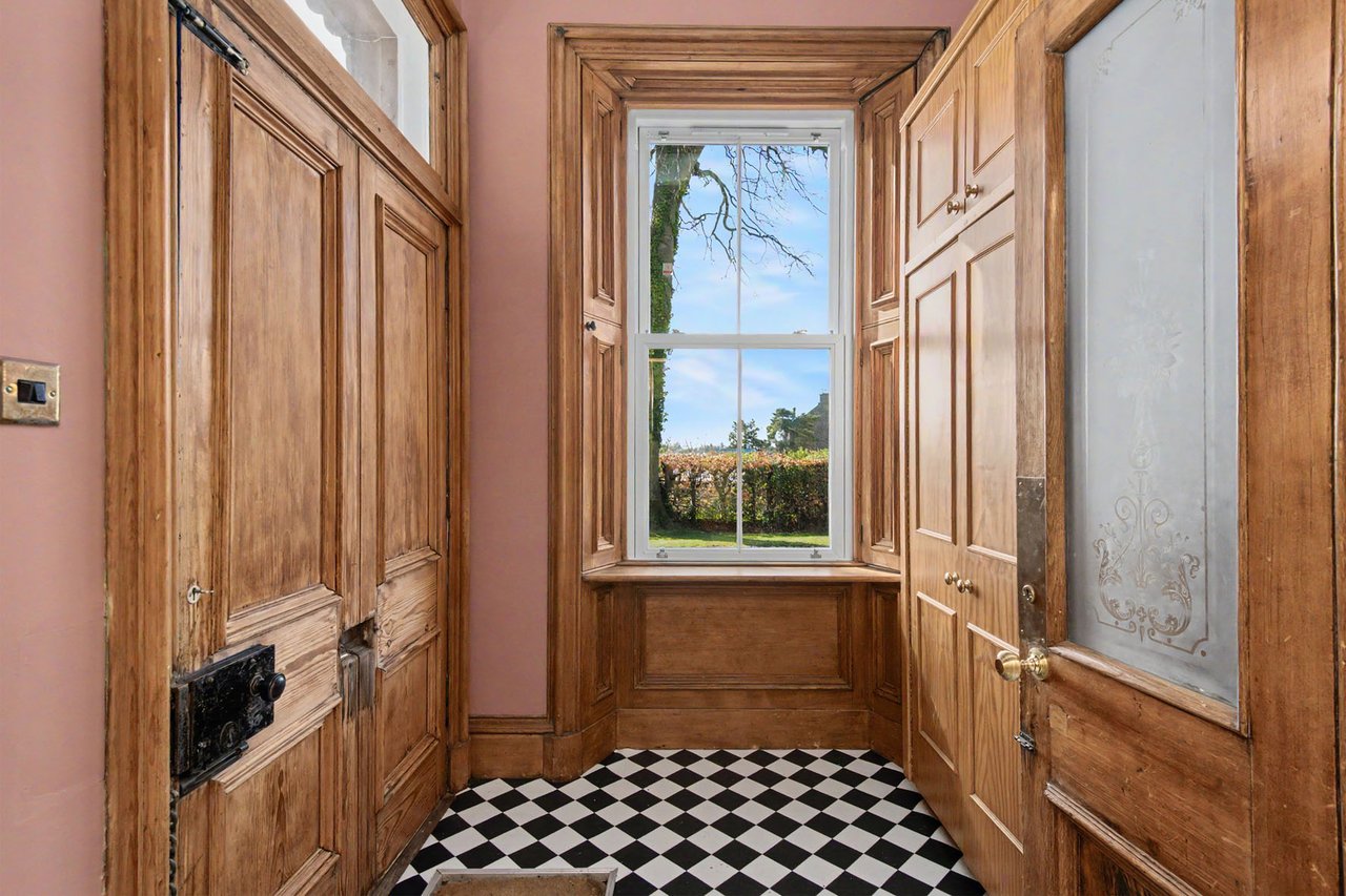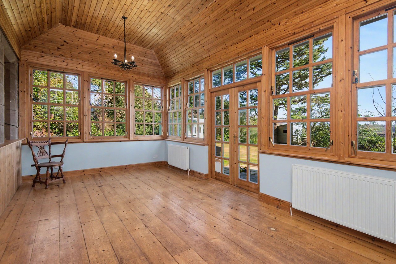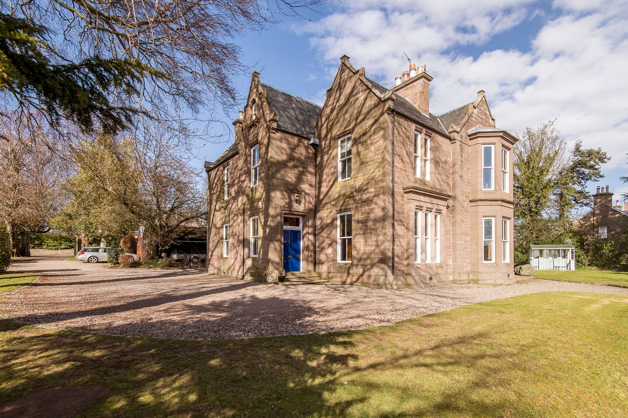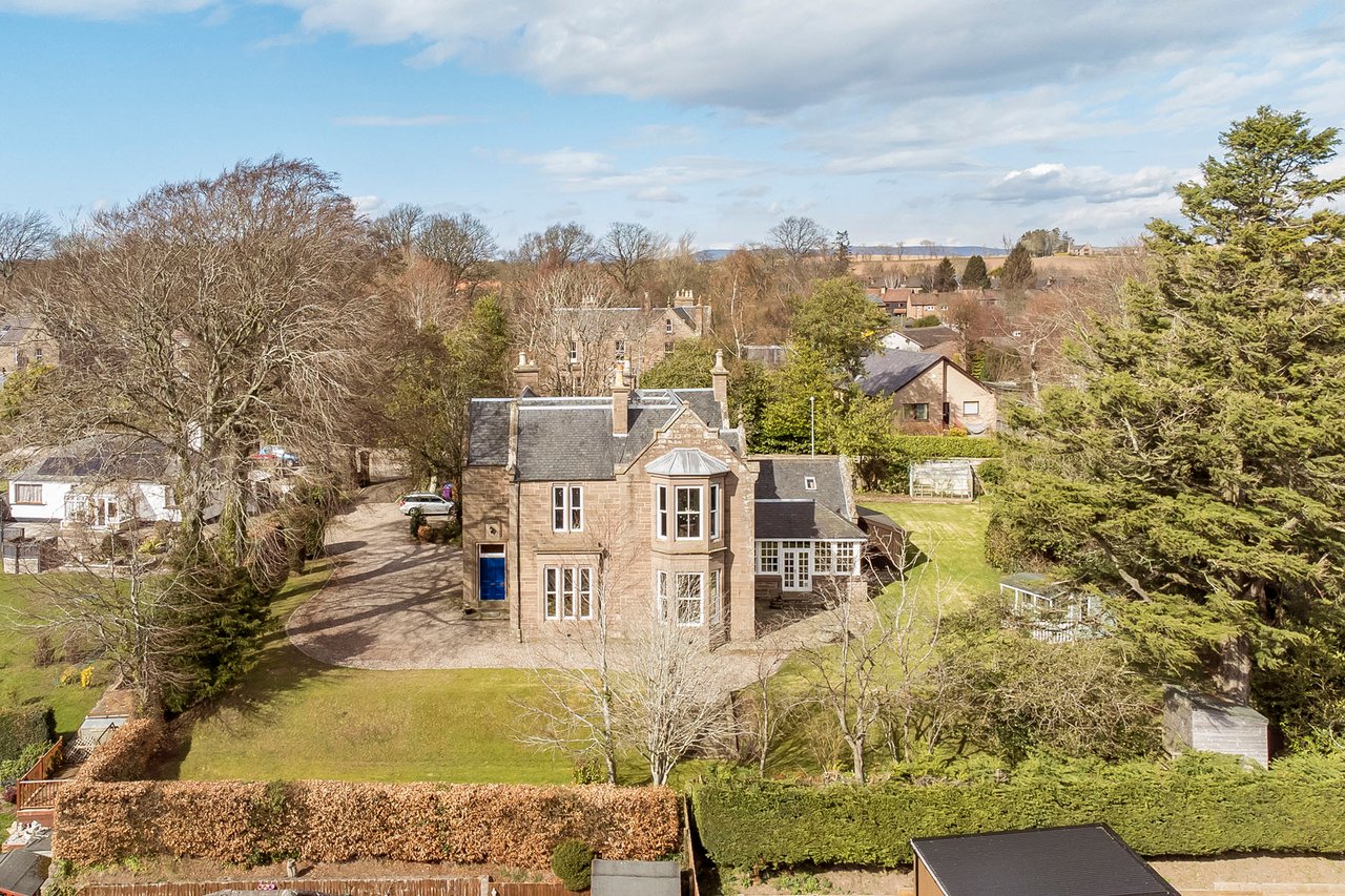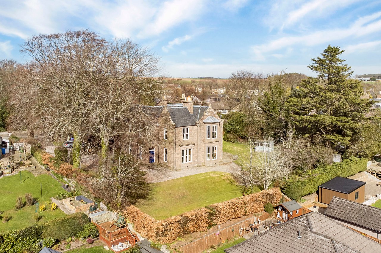 Quietly positioned on a leafy residential road in Brechin, this impressive ground-floor home combines period grandeur with generous proportions, versatile living space, and extensive private gardens. The three-bedroom home is likely to appeal to families, professionals, or those seeking character, privacy, and excellent outdoor space, all within easy reach of the town centre, schooling, and road links to Dundee and Aberdeen. Beautifully retained original details, including panelled doors, deep skirtings, working shutters, and high ceilings, are paired with sympathetic décor throughout. The property also enjoys a sunny south-facing aspect to many of its principal rooms, as well as substantial garden grounds and plentiful private parking. The home opens with an entrance vestibule and welcoming hall showcasing attractive timber panelling and a classic chequered floor. A spacious living room enjoys a handsome bay window, ornate cornicing, and an elegant marble fireplace with a gilt-framed mirror above, whilst the kitchen offers generous workspace and room for dining. Extending from the kitchen, a striking sun room provides a versatile additional reception and dining area, filled with natural light and opening directly onto the garden via French doors.