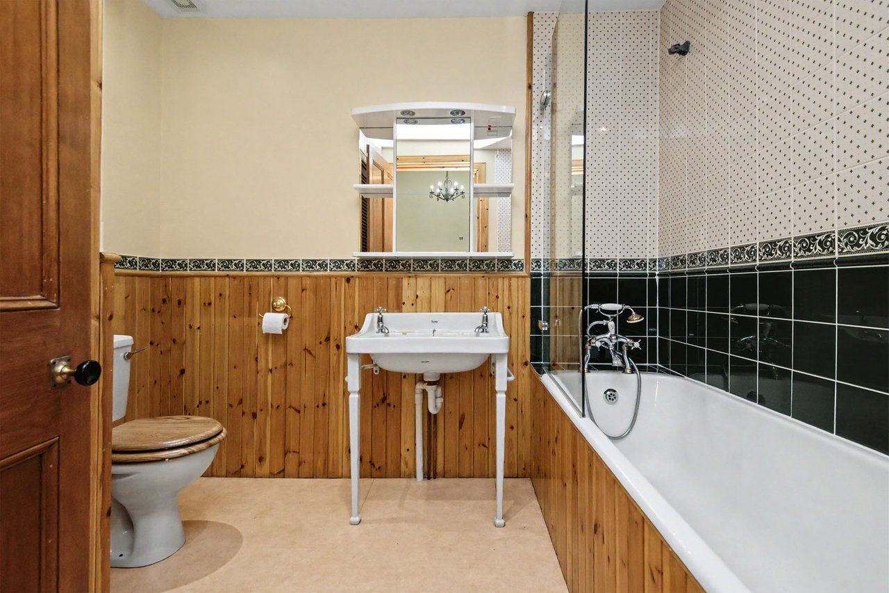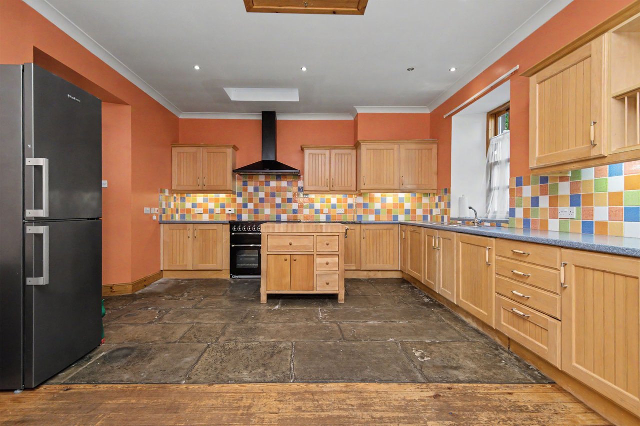 There are three exceptionally spacious double bedrooms, all benefiting from charming period features and flexible floor space. The principal bedroom is a particularly peaceful retreat, tucked away at the rear of the property and served by an en-suite shower room, whilst another bedroom benefits from a wood-burning stove with fender seat. A bathroom with a shower-over-bath and a floored loft area above the kitchen complete the interior. Gas central heating via a boiler installed in 2022, large sash-and-case windows, and double glazing throughout add further comfort. The mature gardens wrap around the property and provide extensive lawned areas, established planting, a children’s tree house, and multiple sunny seating spots. A summer house, greenhouse, firewood/garden shed and generous gravel driveway ensure excellent external storage and ample parking for several vehicles, including a garage with power and lights. Extras: All fitted floor and window coverings, light fittings and appliances are included. Appliances include a freestanding range cooker and extraction hood and integrated dishwasher, and a washing machine. Kitchen Welsh dresser may be available by separate negotiation.