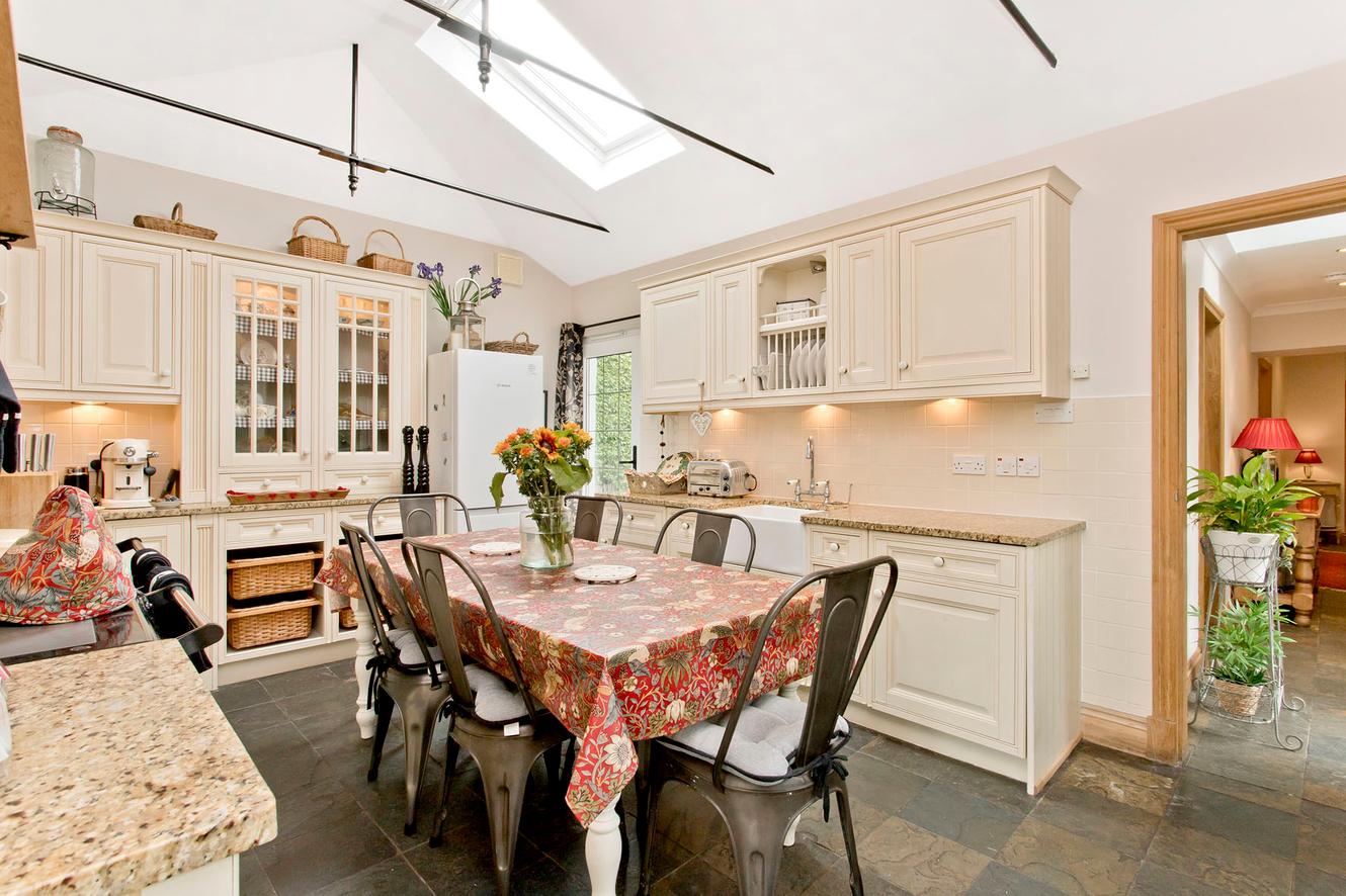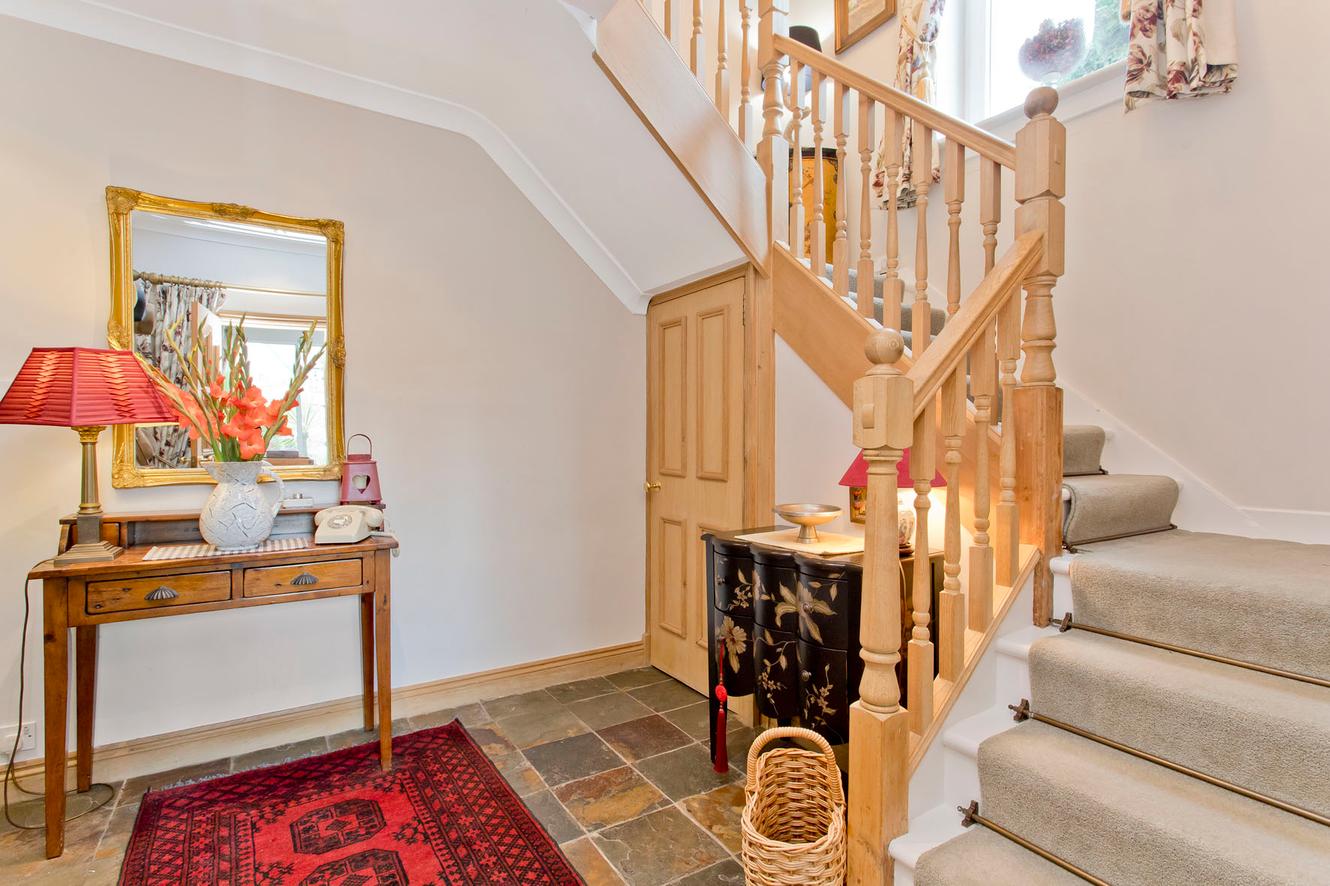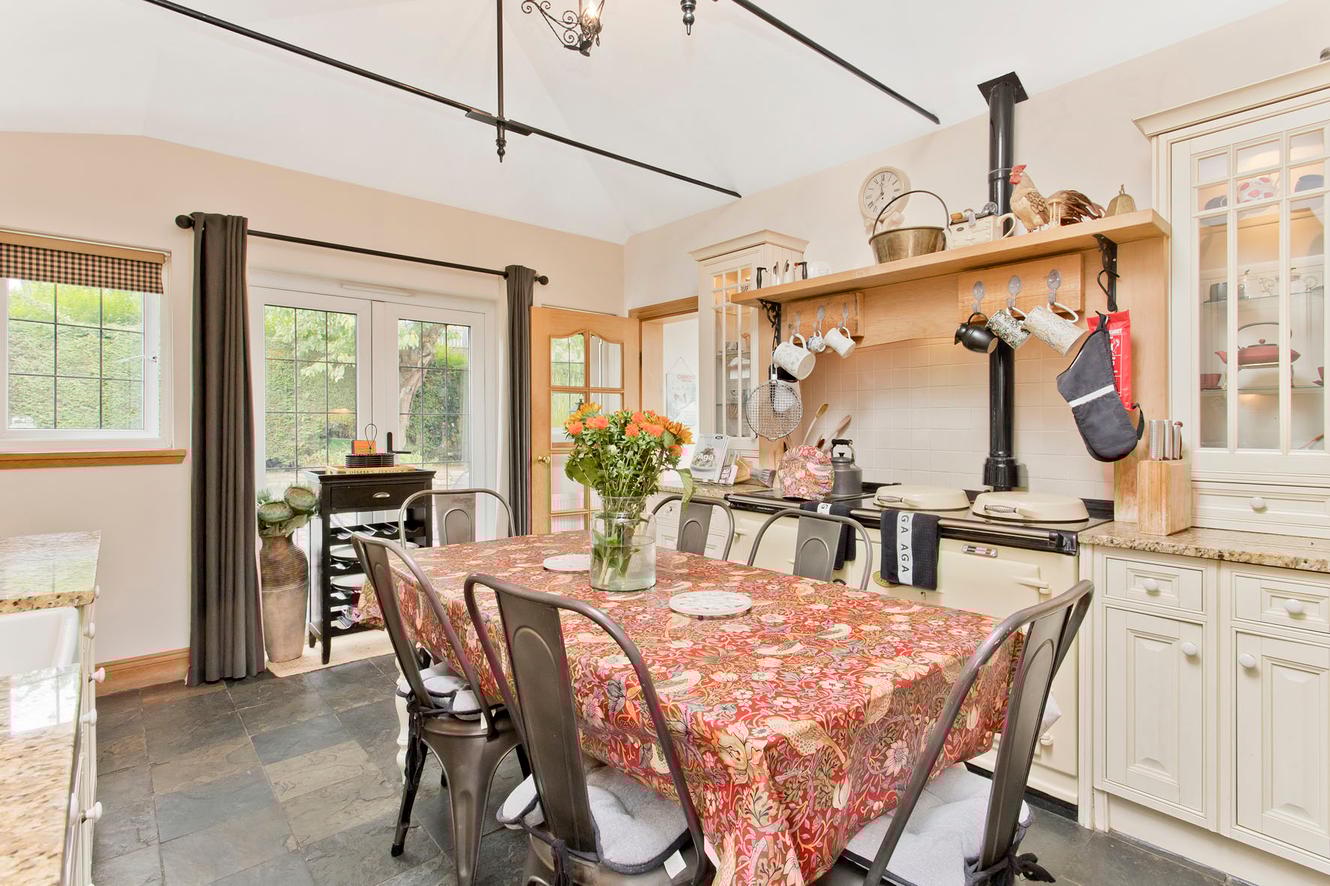 Offering a wonderfully flexible and spacious family home, with four bedrooms, multiple reception rooms, and three bathrooms, enhanced by tasteful décor and characterful features, this generous detached house is situated in Broughty Ferry, close to all the town has to offer. The house is accompanied by a terrace, spacious, mature gardens (with a charming cabin), and a multi-car driveway. The house is set back from the road behind a wall and a gated driveway, offering sought-after privacy, and the front door opens into an entrance porch, flowing through to a long hall with built-in under-stair storage. Neutral décor and a rustic tiled floor set the tone for the tasteful interiors to follow. Leading off the hall are the first two reception rooms, set up in a desirable open-plan layout and comprising a living room and a garden/dining room, both presented with neutral décor and coordinating fitted carpeting. The living room features a striking fireplace around which furniture can be arranged, flanked by a southwest-facing window. The adjoining garden/dining room is filled with natural light through a wealth of glazing, including large patio doors which extend the space outside onto the garden. The room offers plenty of space for arrangements of furniture and could be used in a number of different ways. At the opposite end of the hall, a kitchen (with garden access) awaits and provides space for a central seated dining area, ideal for casual meals and morning coffee. A range of timelessly classic cream-coloured cabinets are accompanied by granite worktops, a Belfast sink, and neutral splashback tiling, as well as appliances including a beautiful cream Aga stove and a freestanding fridge/freezer. A large neighbouring utility room (also with external access) is fitted with matching cabinetry and worktops, a double Belfast sink, and a breakfast bar, and houses additional appliances. The final reception area, a particularly spacious, light-filled conservatory, enjoys a characterful exposed stone feature wall and a warming Aga multi- fuel stove. A shower room and a study complete the ground-floor accommodation, with the latter providing a quiet space for working or studying from home and featuring another multi-fuel stove. On the first floor, a landing (with storage) leads to three of the home's four double bedrooms on offer, and a bathroom. The bedrooms are all presented with pared-back, tasteful décor and fitted carpets for optimum comfort underfoot. The principal bedroom is supplemented by a built-in wardrobe and a modern en-suite shower room comprising a shower enclosure and a WC-suite, whilst the second largest sleeping area affords access to a large southeast-facing terrace overlooking the leafy gardens and providing ample room for outdoor seating. The family bathroom comes complete with a freestanding rolltop bathtub with a traditionally styled shower attachment, and a WC-suite, enveloped by stylish monochrome wall and floor tiling. The fourth and final bedroom is situated on the second floor and benefits from a wealth of built-in storage, as well as access to the eaves storage. The home is kept warm by a gas central heating system and the windows are all double-glazed, with the exception of the porch. Externally, the house is complemented by spacious, mature garden grounds featuring large, well-maintained lawns, a wealth of lovely leafy trees, shrubs, and hedges, a patio for outdoor seating, and a secluded corner with a charming cabin and space for a hot tub. A number of sheds, Wendy houses, and further outdoor storage solutions are also included. The private front driveway offers ample off-street parking. Extras: all fitted floor coverings, window blinds, most curtains, all light fittings, all white goods, and most of the furniture from the garden cabin will be included in the sale. Other items of furniture may also be available as part of the sale.