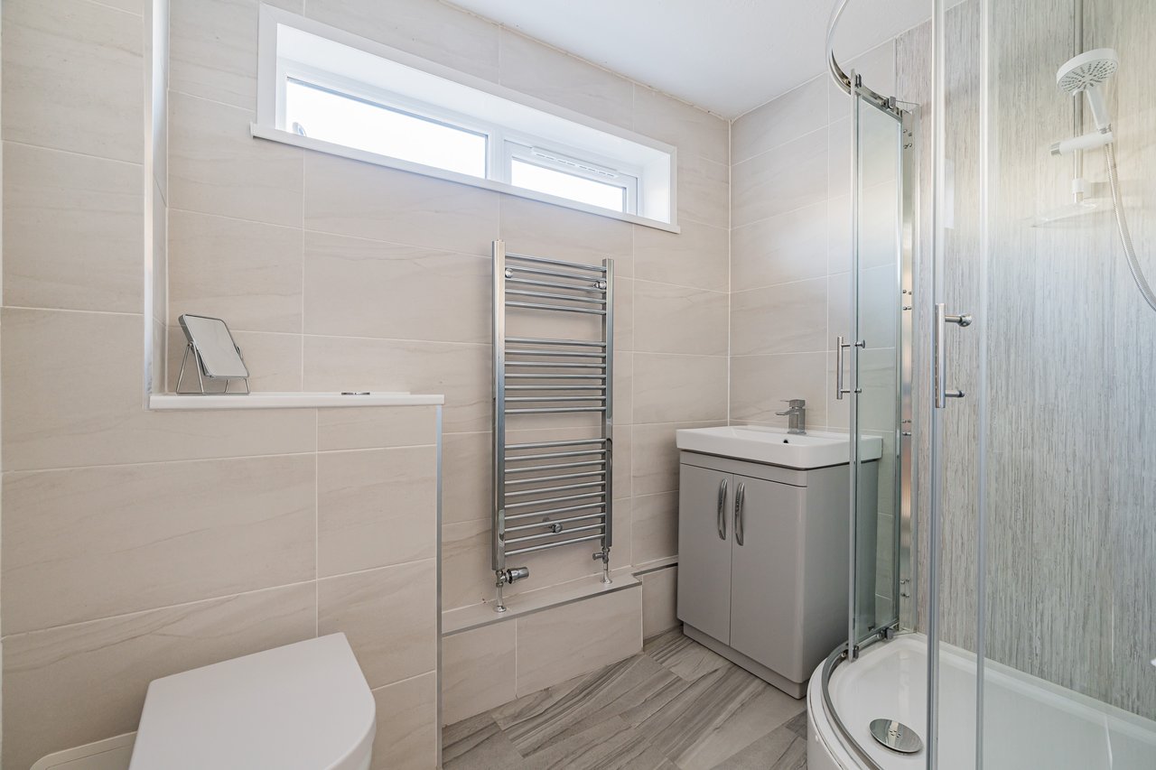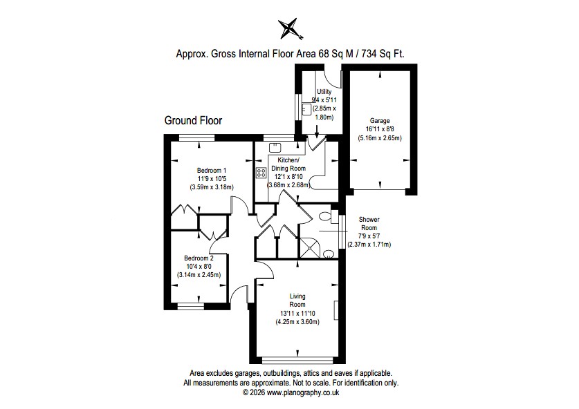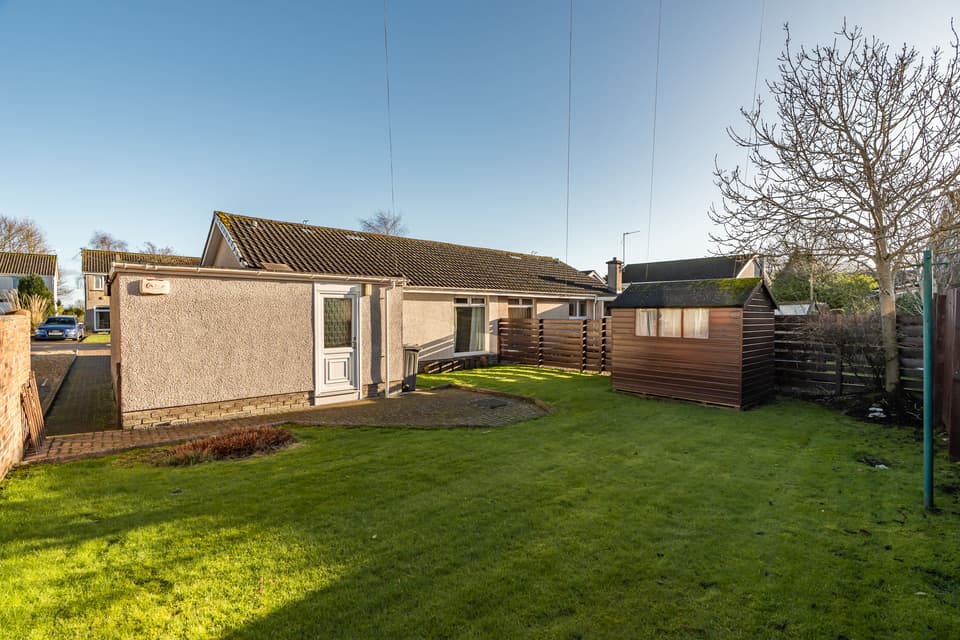 This spacious two-bedroom semi-detached bungalow offers generous accommodation all on one level, perfect for those seeking easy living with excellent indoor-outdoor flow. The property features a large living room with picture window (note: gas fire is redundant and will not be replaced), a well-equipped kitchen with breakfast bar, and a notably large utility room. Both bedrooms are comfortable doubles, and the contemporary shower room adds a stylish, modern touch. Ample storage is provided via three hall cupboards. Outside, the large garden boasts a mix of lawn, patio, and a shed, while a two-car driveway and garage with electric door, lighting and power ensure practical convenience.