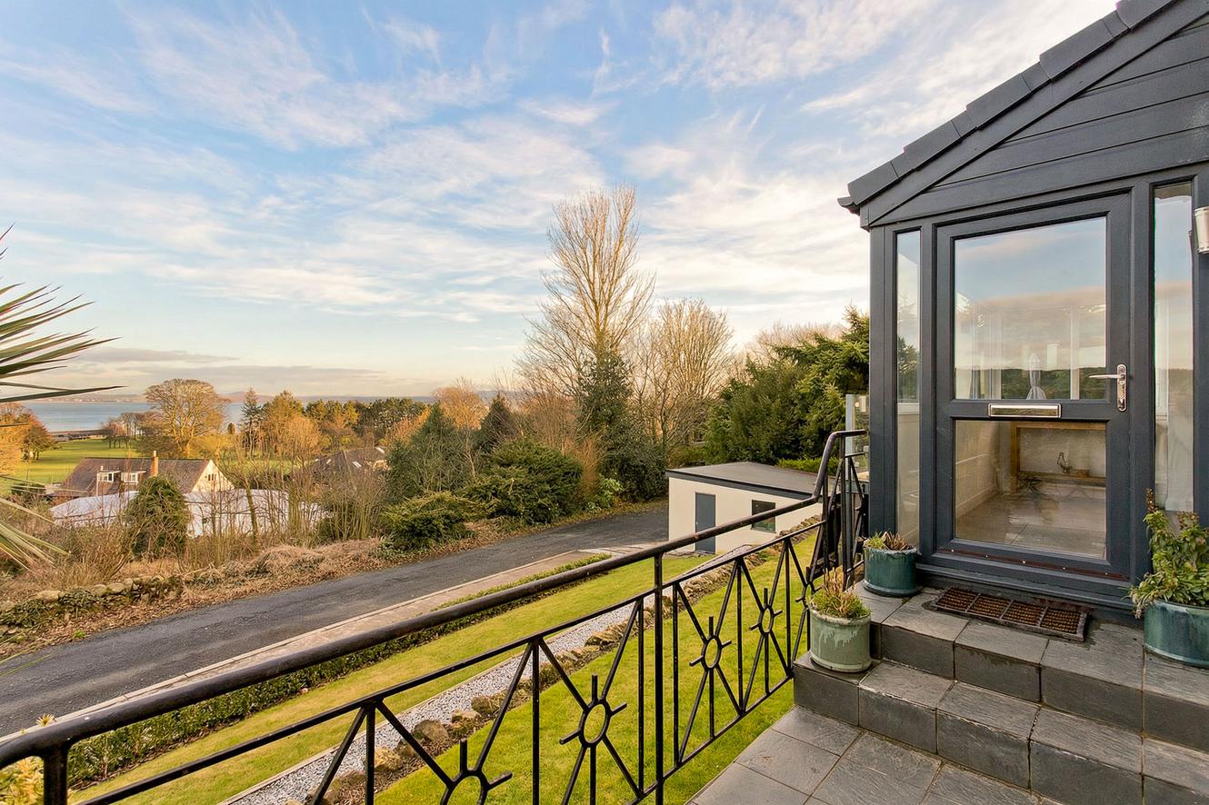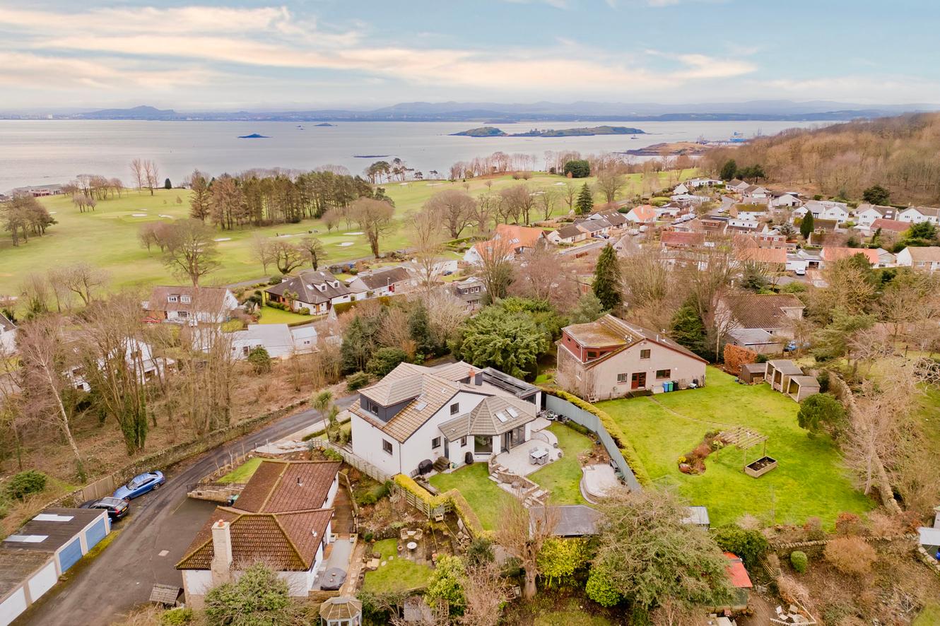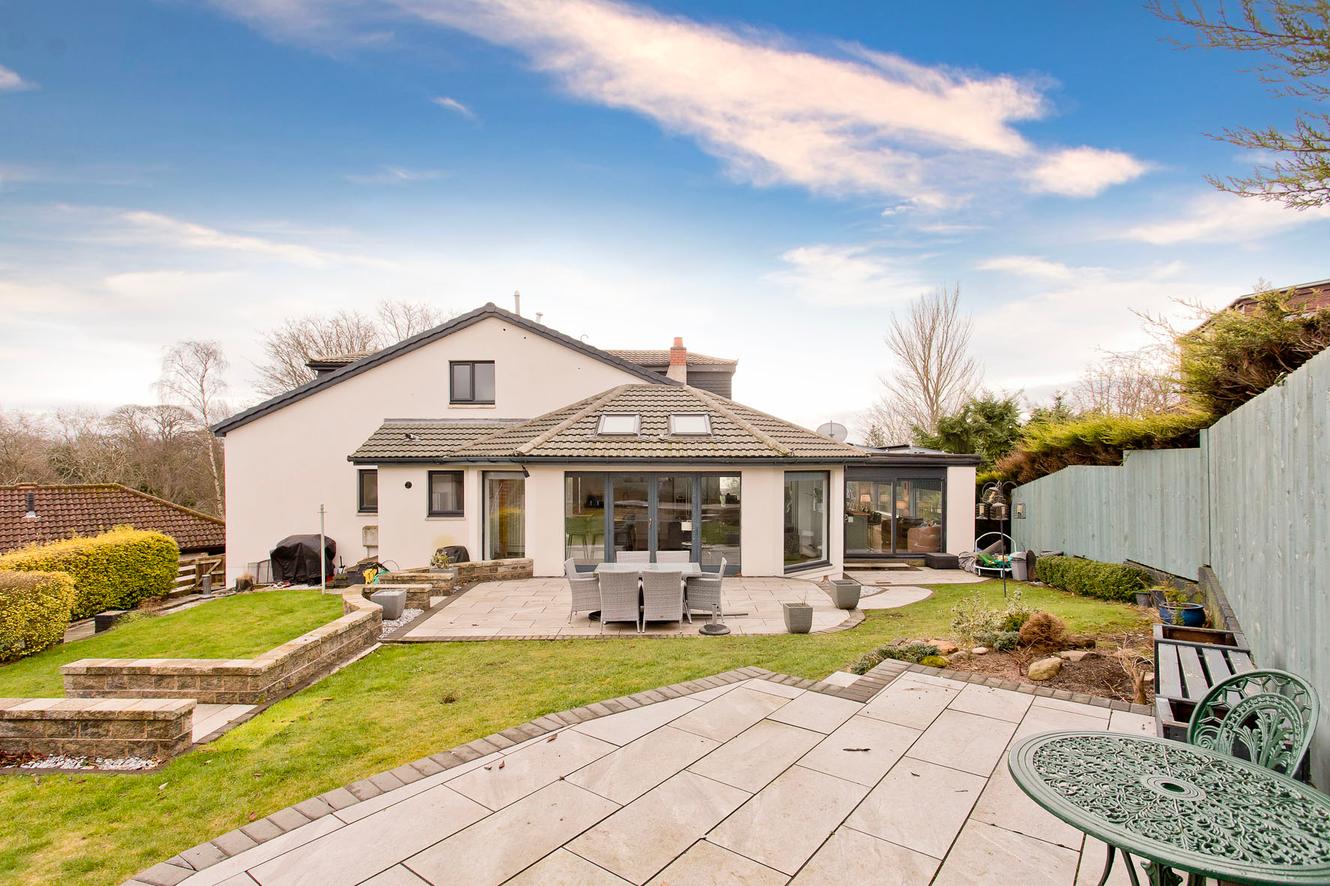Situated in the historic coastal village of Aberdour, with incredible elevated views, this striking detached residence is an exceptional family home. It promises all the space and functionality required for modern living, with five bedrooms (two with en-suite shower rooms), a four-piece bathroom and third shower room, and a utility room. Interconnected sun-filled reception areas, including a sitting room, a dining room with a bar, and an open-plan breakfasting kitchen/living room, all flow onto the landscaped gardens, which include a raised south-facing terrace and a powered garden room. The partially enclosed wraparound plot also provides garage and private driveway parking.