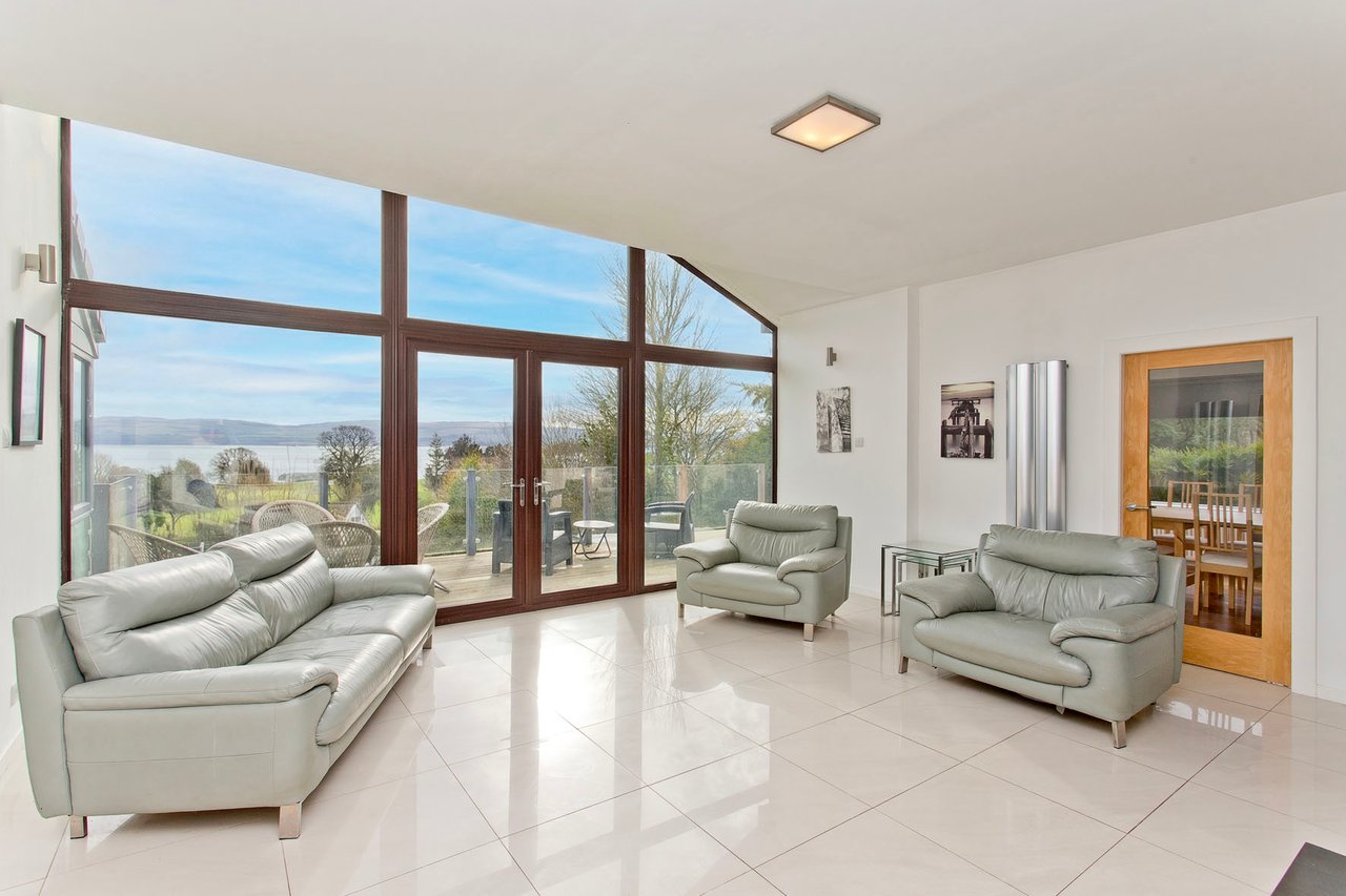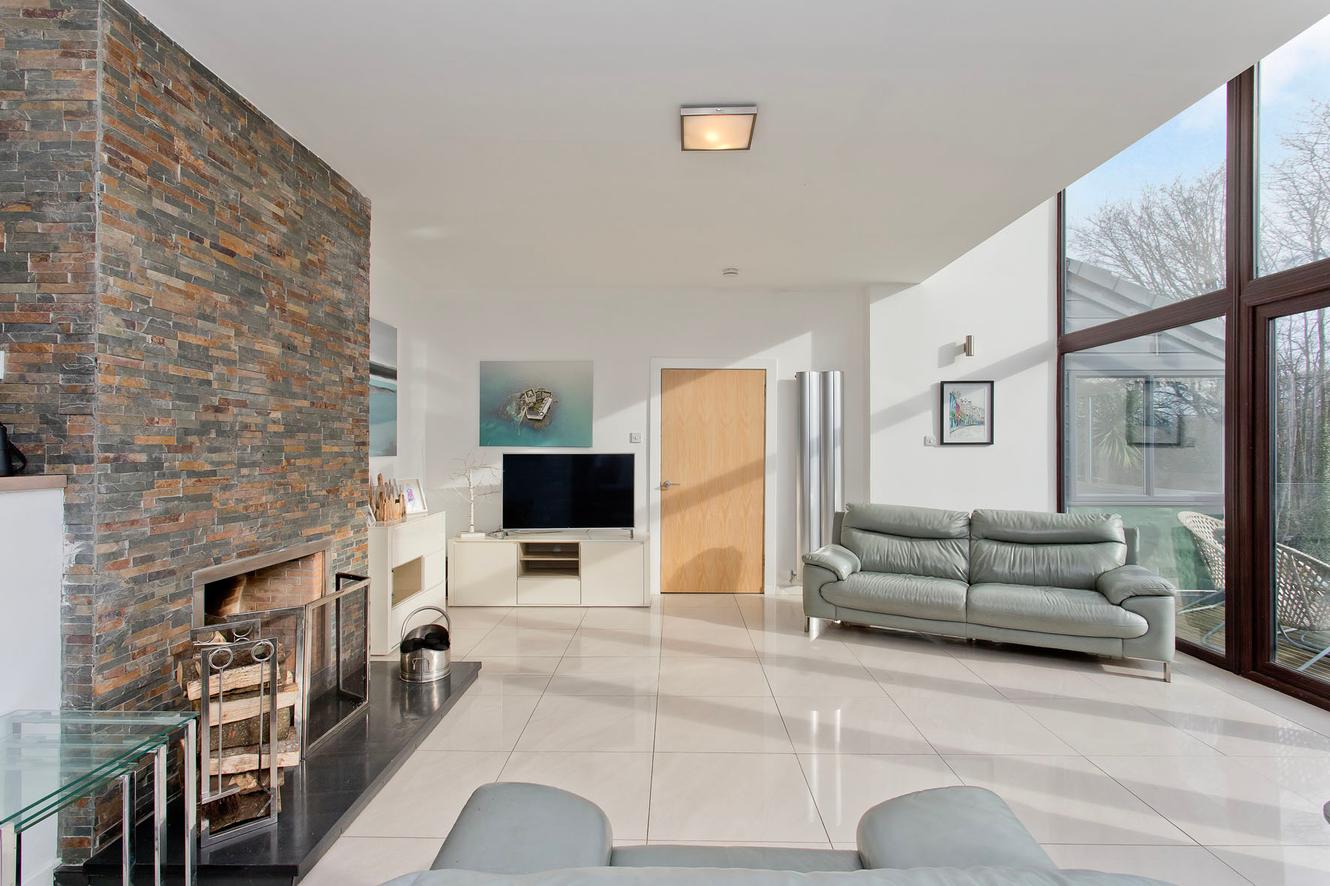 Show-stopping reception spaces In the porcelain floor-tiled sitting room, full-height glazing allows the coastal outlook to take centre stage and bathes the space in sunlight. A perfect room for all seasons, it features a cosy open fire and patio doors opening onto the terrace.