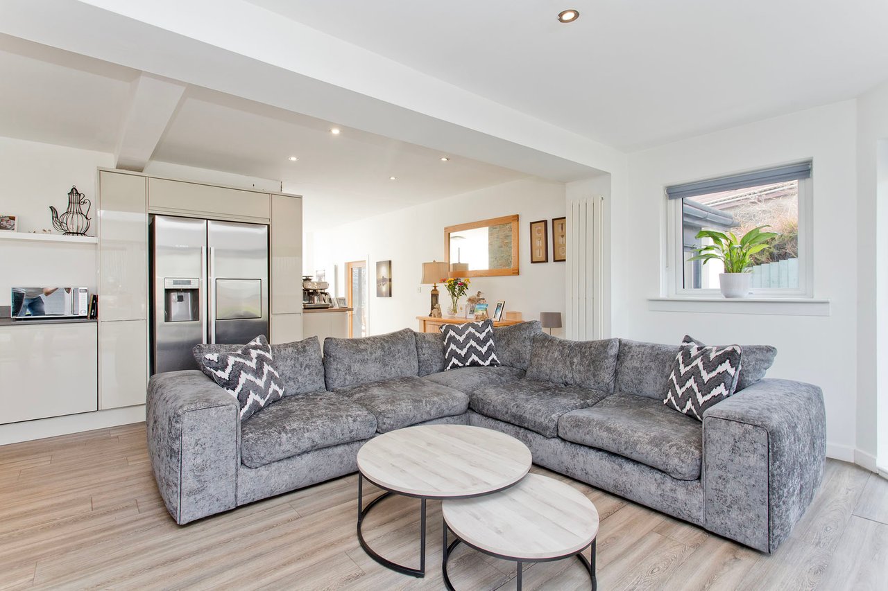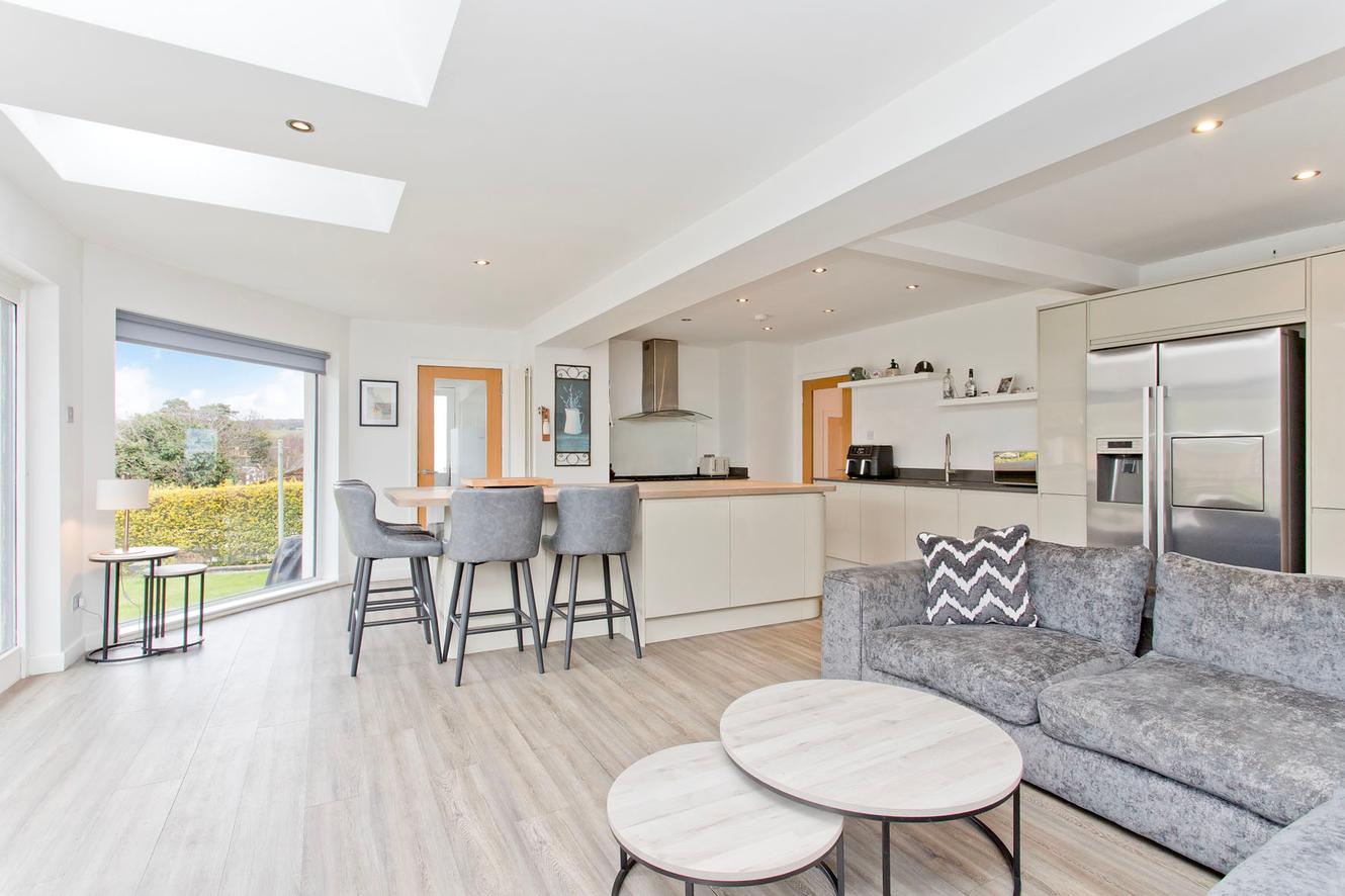 Light-filled open-plan breakfasting kitchen/living room with garden access