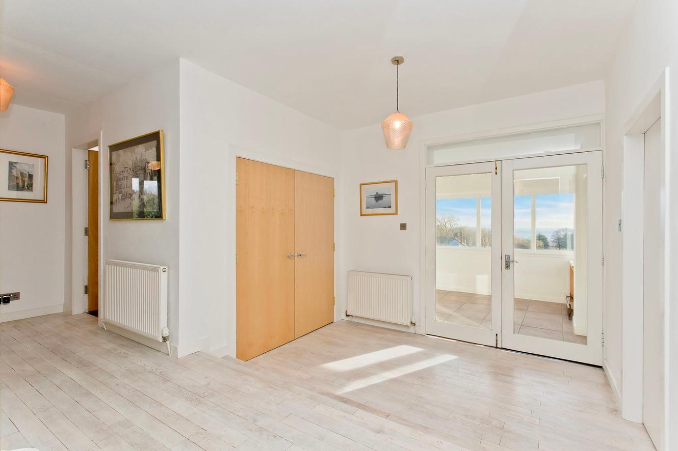Light-filled entrance A tile-floored vestibule leads into a reception hall with durable wood flooring and a cloak cupboard, providing concealed storage.