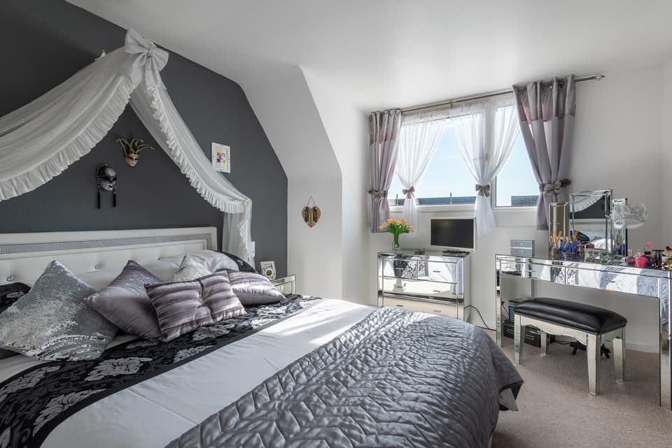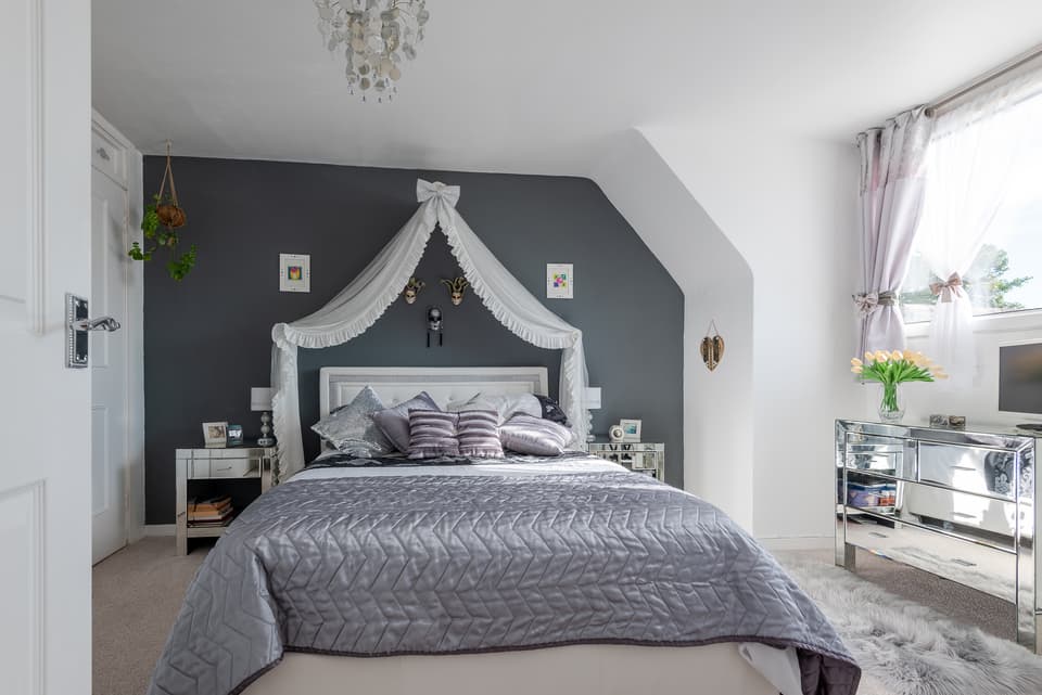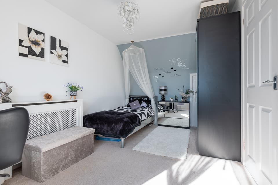 - Bedroom: 13' 7" x 10' 5" (4.14m x 3.17m)