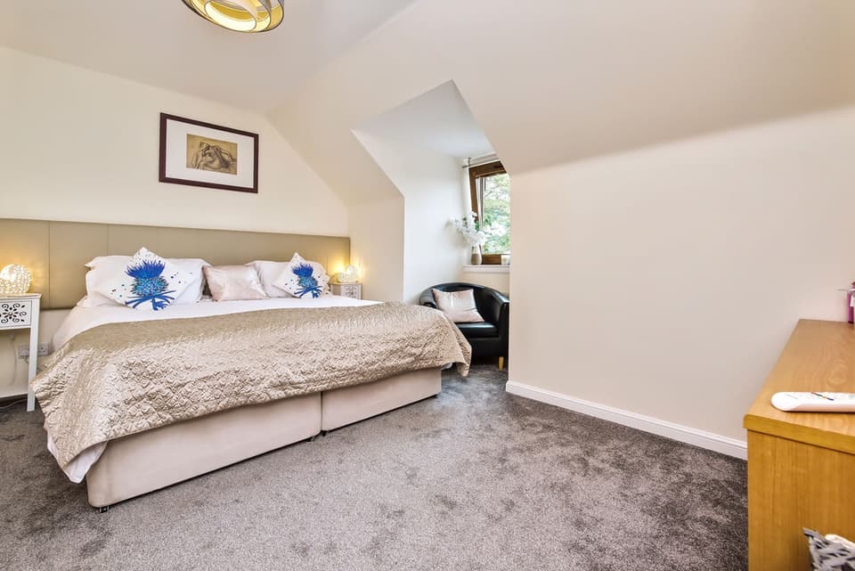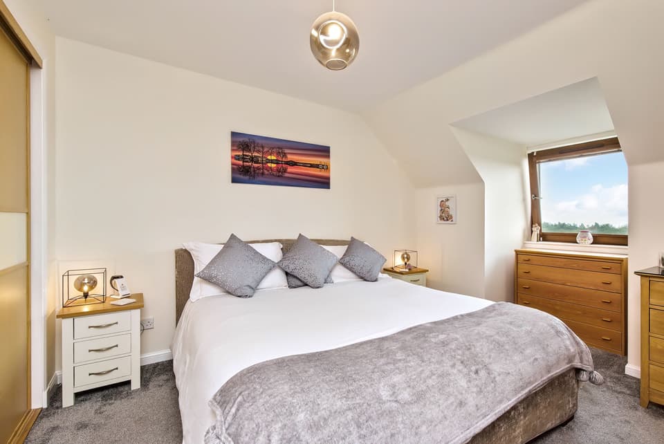 Sun-facing main bedroom with a wardrobe & ensuite
