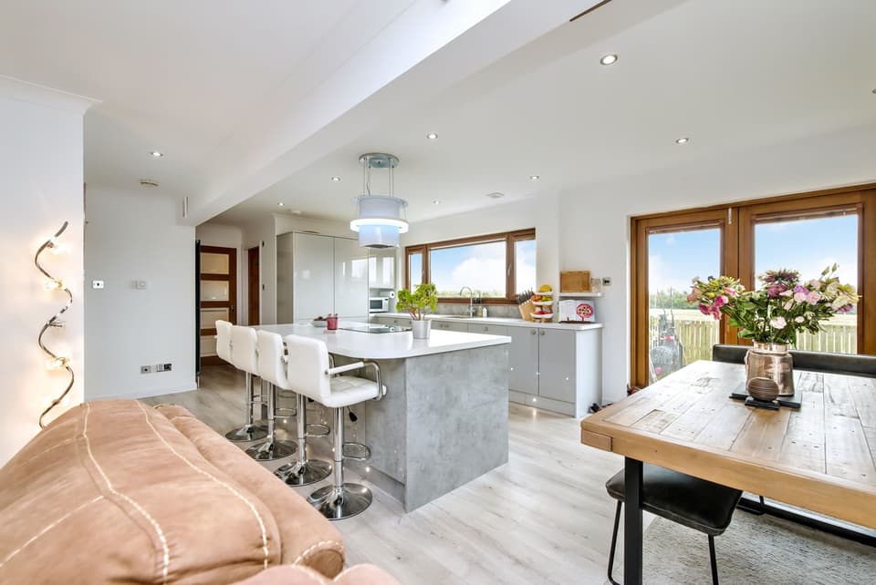 With its sought-after rural village setting, within easy reach of Carnoustie, this generous detached house represents an ideal family home. The home includes four bedrooms and a carpeted living room open to an ultra- modern breakfasting kitchen with space for seated dining and French doors to the garden. It also benefits from a family bathroom with an overhead shower, an en- suite shower room and a utility room with a guest WC. Outside, the property comes with ample private parking, including a paved driveway with space for up to three cars, a single garage and an enclosed rear garden with a south easterly aspect, a spacious, covered wooden deck and a shed for storage.