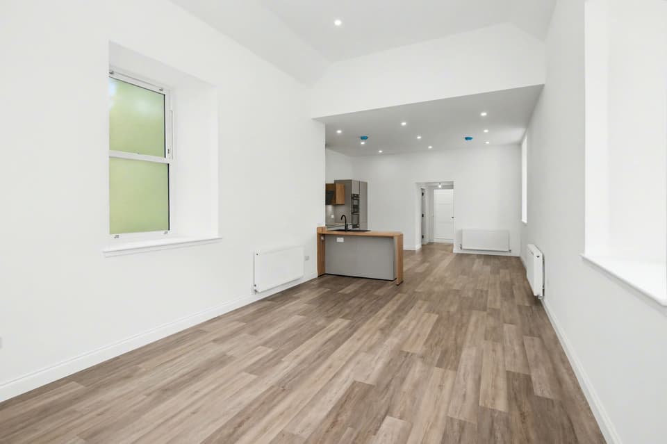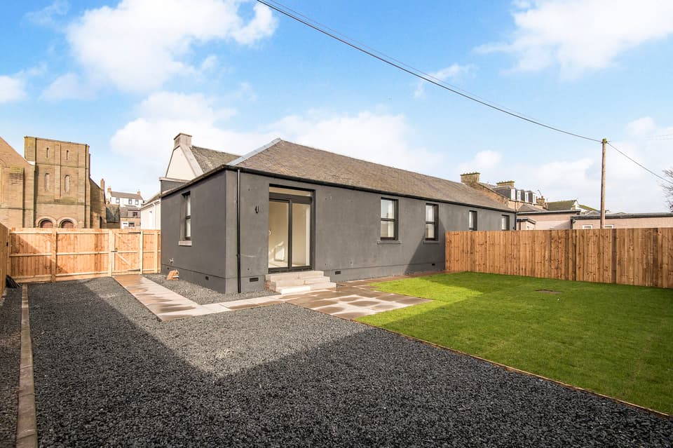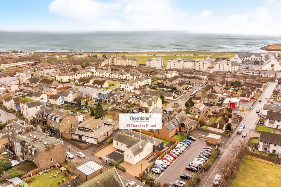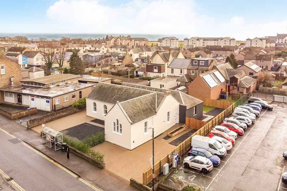 Forming part of a sensitive and high-quality conversion of a former church hall, this exceptional contemporary home blends crisp modern interiors with subtle architectural character, including generous ceiling heights and striking feature windows, within the heart of Carnoustie. The spacious open-plan living, dining, and kitchen area (with attached utility room) is ideal for modern lifestyles, complemented by three south-facing double bedrooms, including a principal suite with en-suite shower room, and a sleek family bathroom. Outside, there is private off-street parking and an enclosed garden, while Carnoustie’s beach, golf links, amenities, and rail station are all within easy reach.