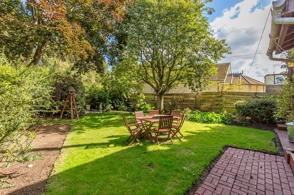 Externally, the house is supplemented by a mature, leafy rear garden including a spacious lawn and a wealth of established trees and shrubs. Private parking is provided by an attached single garage.