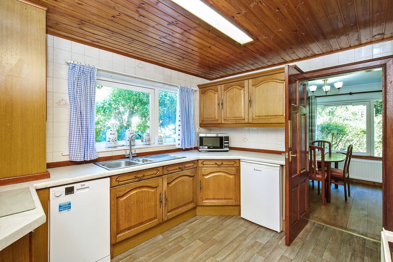 Woodhaven is a generous detached house in the village of Barry, on the edge of Carnoustie. The home offers spacious and flexible accommodation over two floors, including four bedrooms, three reception areas, a study, a kitchen, two bathrooms, and two WCs, plus a mature garden and an attached single garage. The house gives the new owner a blank canvas to carry out cosmetic improvements and create a modern home to their own taste.