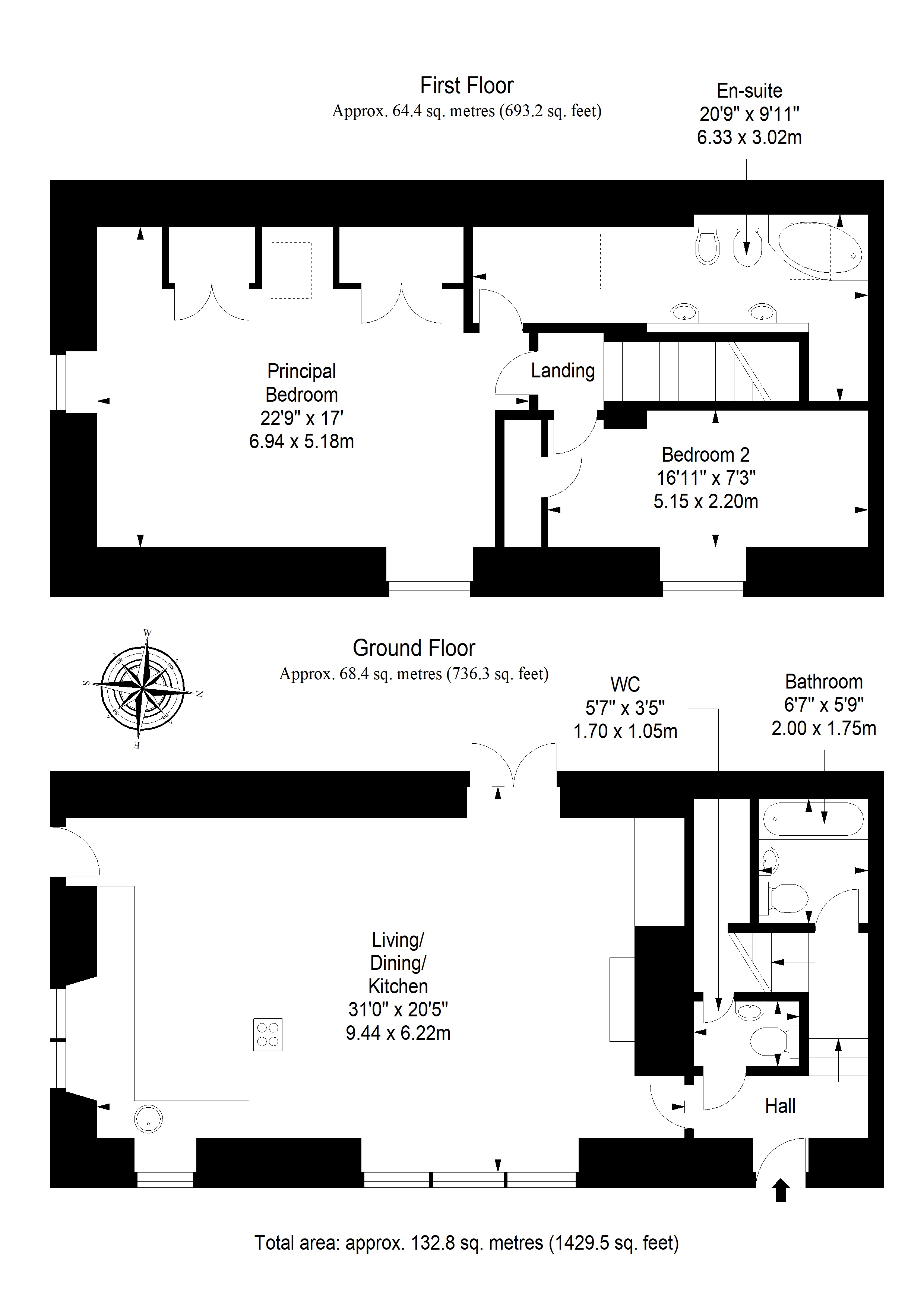 Upon entering, you’re welcomed into a warm and inviting interior with exposed beams, natural light. The spacious lounge features a large window, open fireplace, and patio doors opening directly onto the courtyard — creating a seamless connection between indoor and outdoor living. The adjacent farmhouse-style kitchen is fitted with a Belfast sink, and integrated appliances.