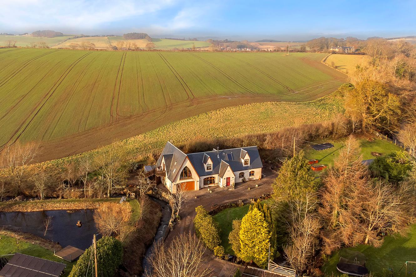 Briery Hall is a breathtaking architect-designed contemporary detached house nestled in the rolling countryside just moments from the village of Ceres. This bespoke one-of-a-kind three bedroom home comprises of the luxurious two bedroom main accommodation alongside a self contained one bedroom annex. The annex is currently licensed as a thriving short-term let marketed via Cottages.com (UK33372) (income figures are available to prospective buyers on request). In addition there is a separate one-bedroom lodge within the grounds. Every inch of the property (including the annexe and lodge) is curated to an outstanding specification, with design continuity throughout and panoramic country views at every turn. With full planning consent granted to convert the rear section of the four-car garage into a one-bedroom unit with a shower room and kitchen area, Briery Hall presents a rare opportunity to acquire a high-end rural retreat with remarkable flexibility, lifestyle appeal, and further development potential. Positioned less than 20 minutes from St Andrews and 30 minutes from Dundee, it balances countryside tranquillity with easy connectivity. The property also includes an acre of private grounds, enhancing the sense of space and offering valuable long-term potential.