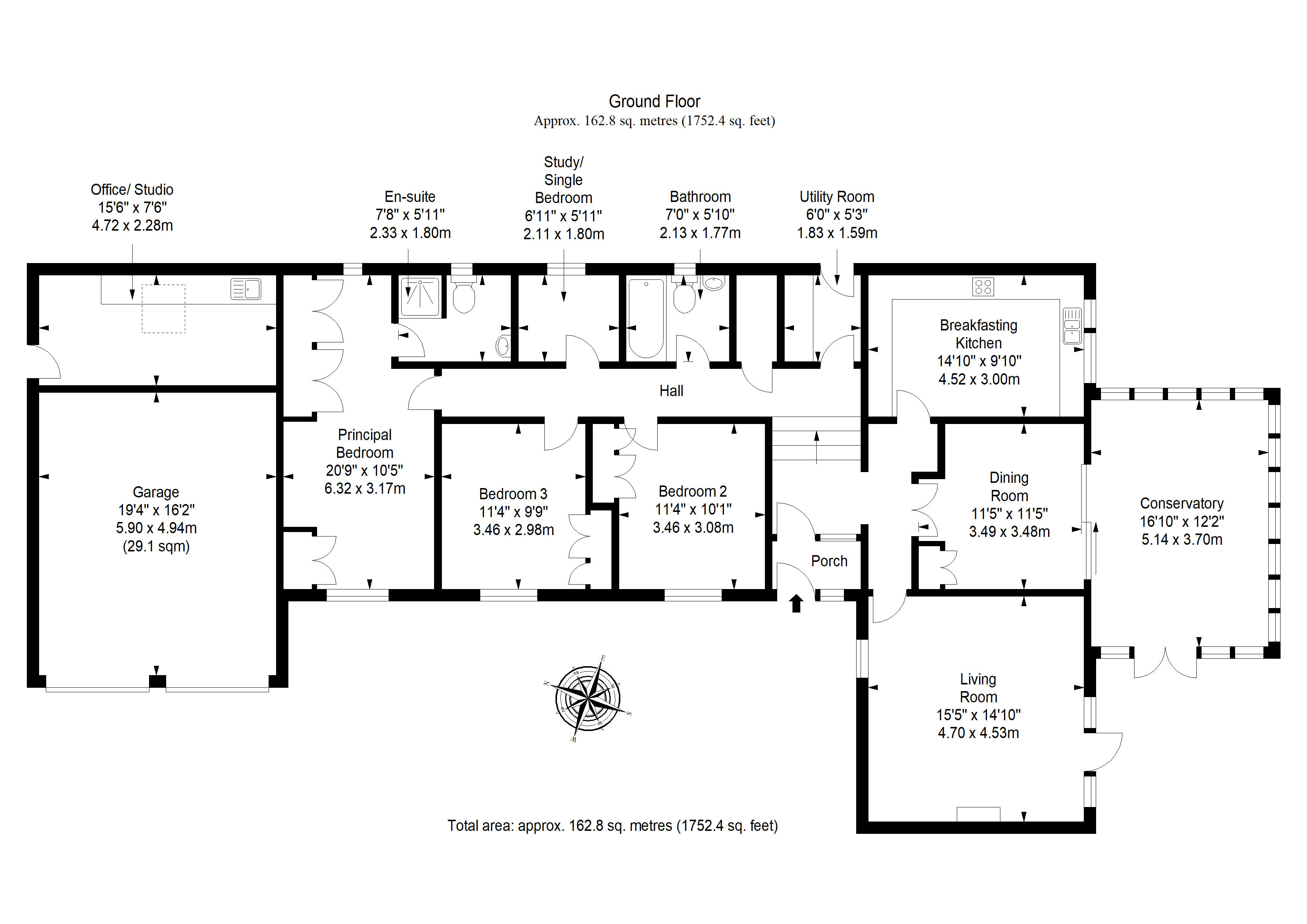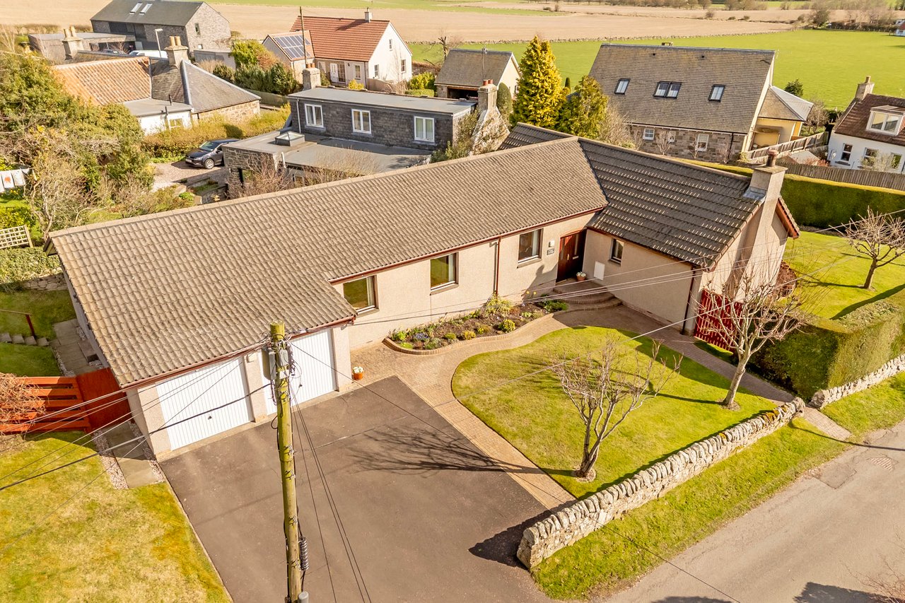 Set on a generous corner plot in the picturesque village of Ceres, Morgill Cottage is a spacious detached bungalow offering a relaxed blend of rural charm and modern comfort. The home features a light-filled double aspect living room with a fireplace, a breakfasting kitchen with fitted units, quality worktops and downlighters, a dining room, and a bright conservatory opening to the garden. Four bedrooms provide excellent flexibility, including a principal room with an en- suite, alongside a family bathroom. Outside, private gardens create a peaceful setting with lawns and patio areas, with an attached flexible office/studio, while a private driveway and double garage ensure ample parking.