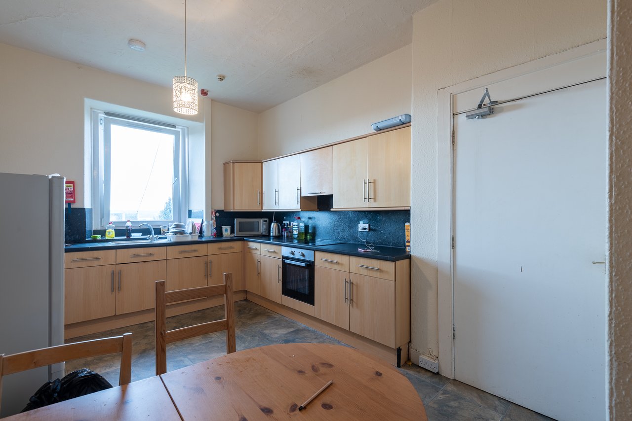 The apartment offers spacious accommodation which comprises: bright lounge with traditional period features, kitchen/dining area with a range of wall and base units, bathroom with three-piece suite and five good sized bedrooms.