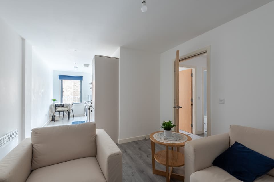 Apartment C is a stylish apartment set with a refurbished property within the heart of Dundee. The property which benefits from electric heating and double glazing comprises hall with all accommodation leading off, bright lounge with ample space for occasional furniture, access to kitchen with modern wall mounted and base units, oven, hob, extractor, fridge, freezer, dishwasher, washing machine, rear facing window, space for breakfasting table, two well appointed bedrooms and quality shower room. There is a private store room on the first floor and communal courtyard to the rear.