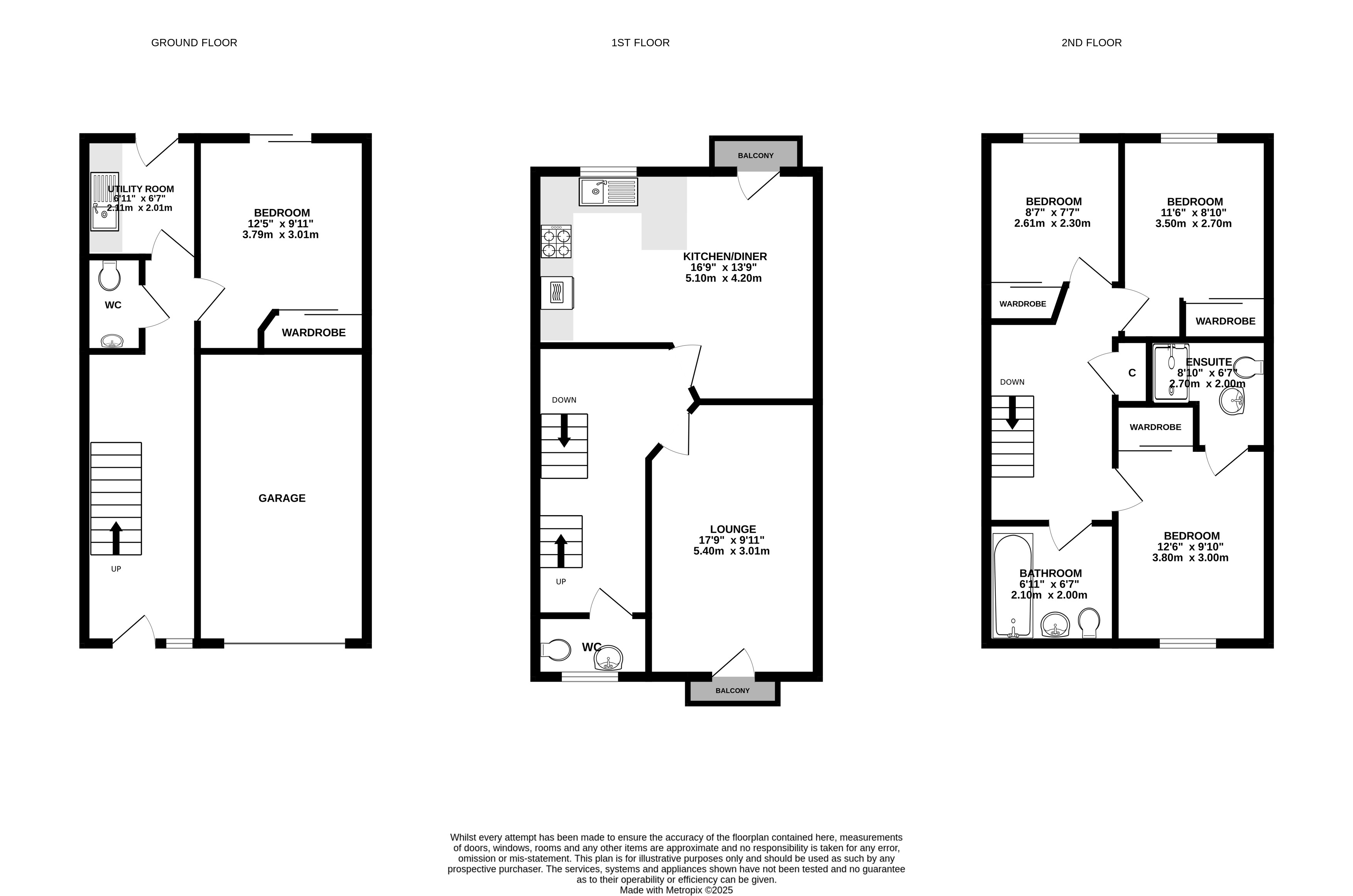 The spacious and versatile accommodation is arranged over three levels and comprises: a bright and welcoming lounge featuring a Juliet balcony; kitchen and dining area—also benefiting from a Juliet balcony—offering an ideal space for entertaining and family meals; a practical utility room; two separate WCs; a family bathroom fitted with a three-piece suite; and four well-proportioned bedrooms, one of which enjoys the added luxury of an en-suite shower room.